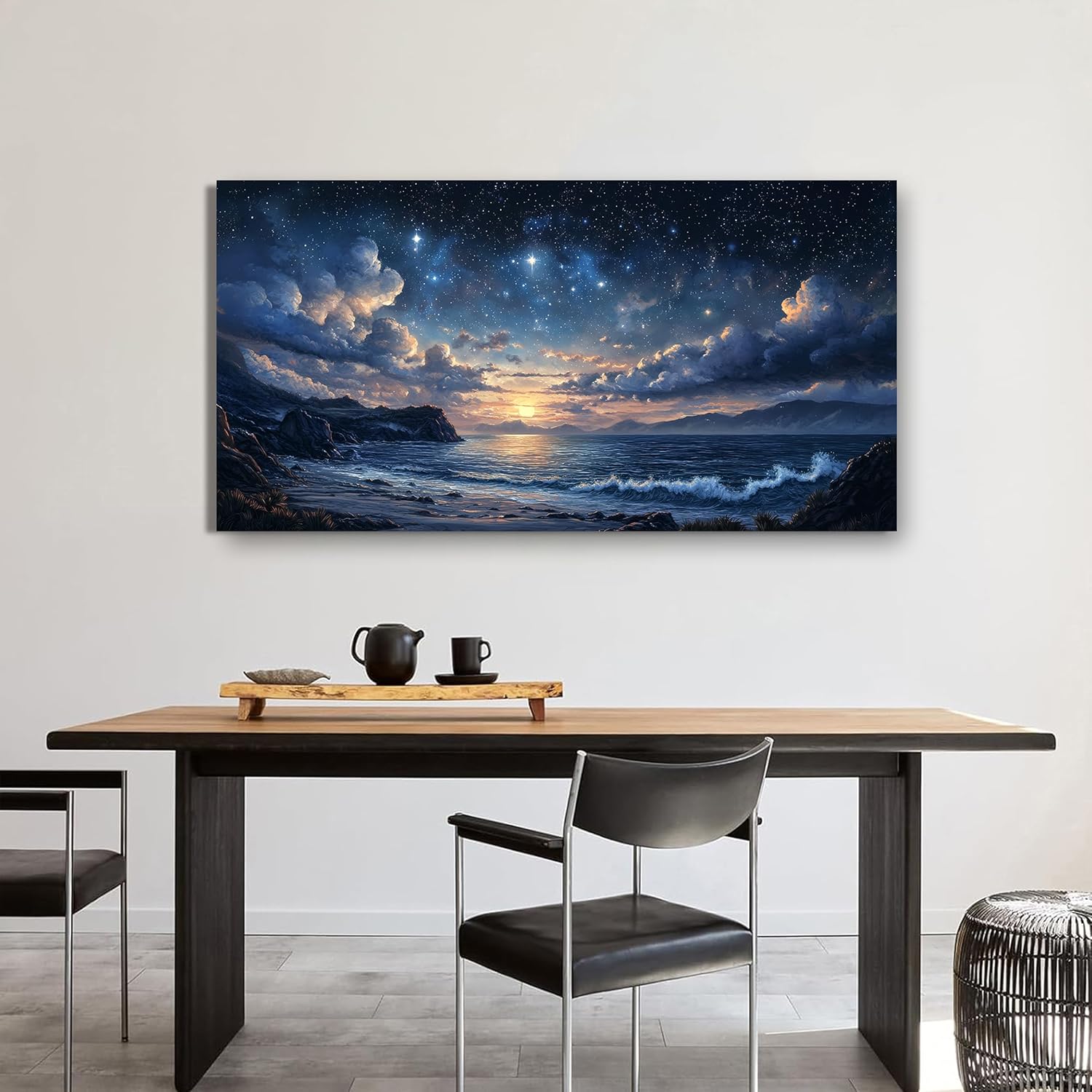 Canvas Wall Art Decor Modern Wall Art Pictures for Living Room Landscape Coastal Wall Art Artwork for Walls Star Night Blue Wall Decor Art Prints Art Work for Home Office Room Wall Decor 20" x 40"