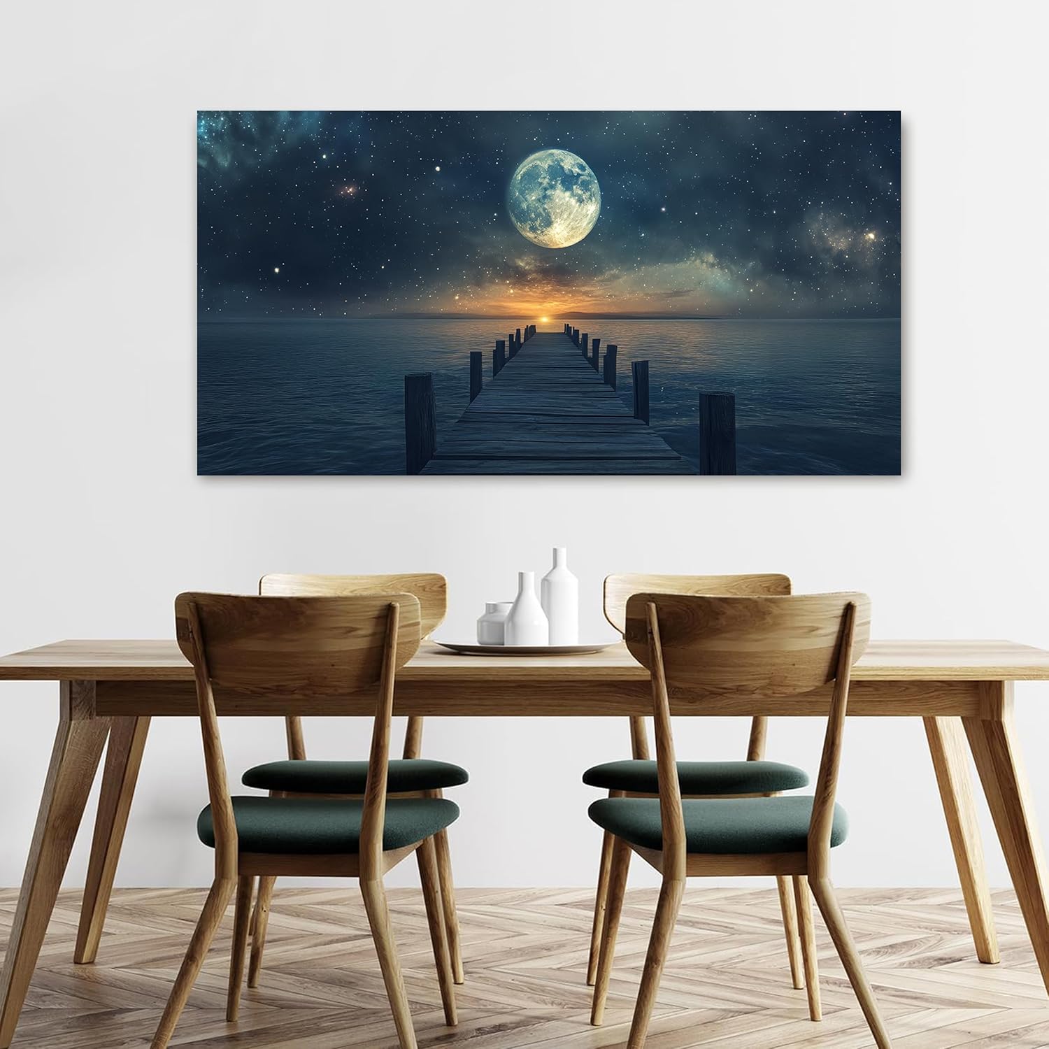 Canvas Wall Art Decor Artwork for Walls Large Wall Art Pictures for Living Room Landscape Coastal Wall Art Natural Blue Wall Decor Art Prints Star Moon Art Work for Home Office Wall Decor 24" x 48"