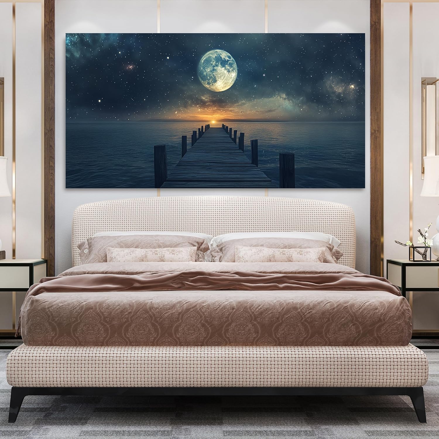 Canvas Wall Art Decor Large Wall Art Pictures for Living Room Canvas Art Wall Decor Landscape Coastal Wall Art Blue Artwork for Walls Prints Star Moon Art Work for Home Office Wall Decor 29"x58"