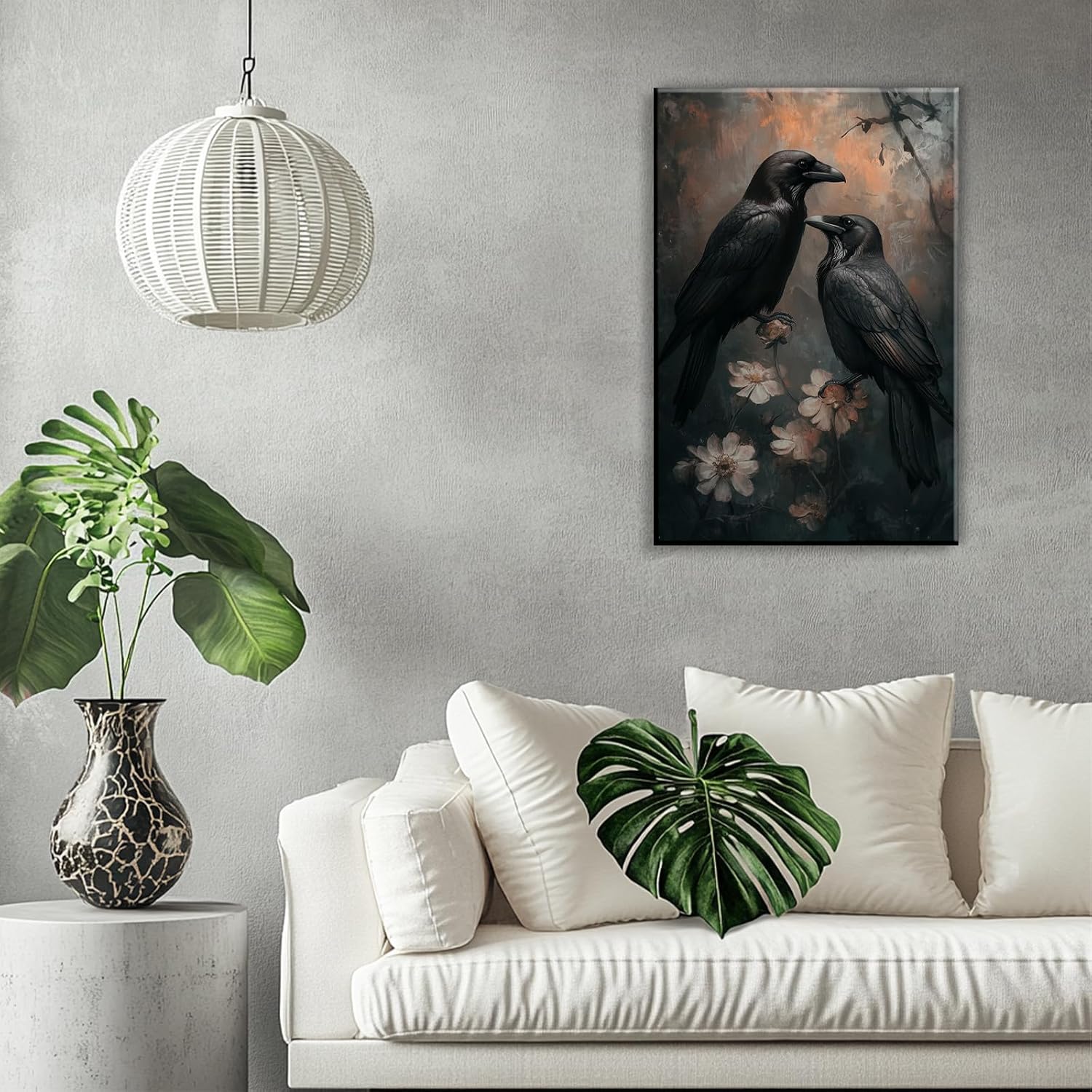 OAAPITI Birds Canvas Wall Art Black Couple Crow Picture Print Vintage Gothic Raven Artwork for Living Room Halloween Home Wall Decor(Artwork-7,12"x18")