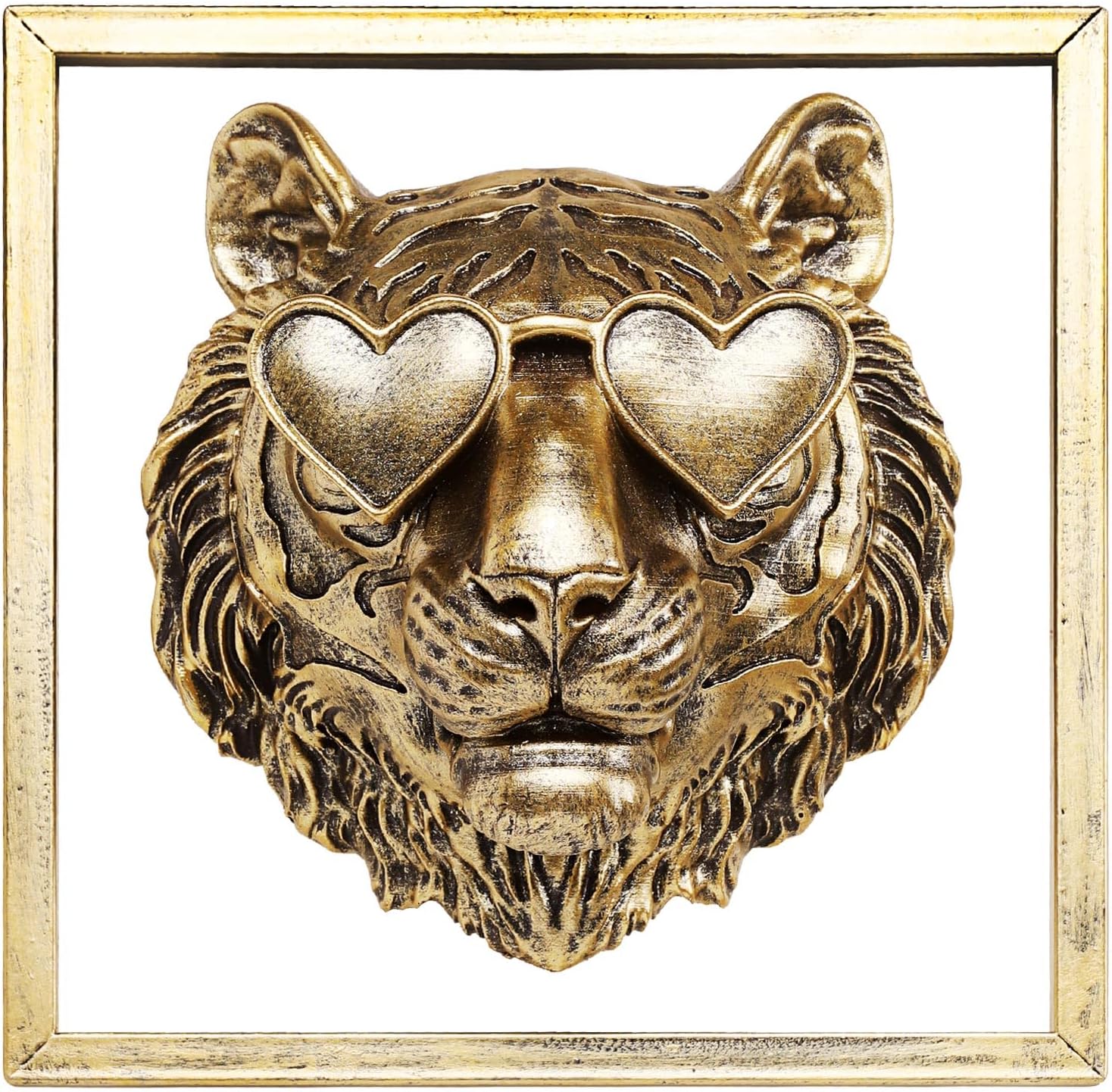 Animal Heads Wall Decor (Includes Metal Frame) Resin Animals Sculptures Head Wall Hanging Decoration Gold vintage Wall Sculpture for Living Room Bedroom Office(Tiger)