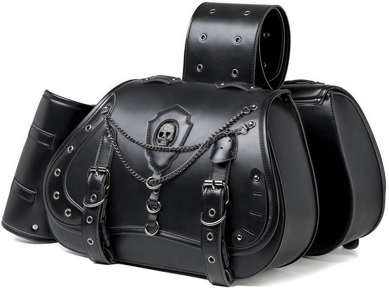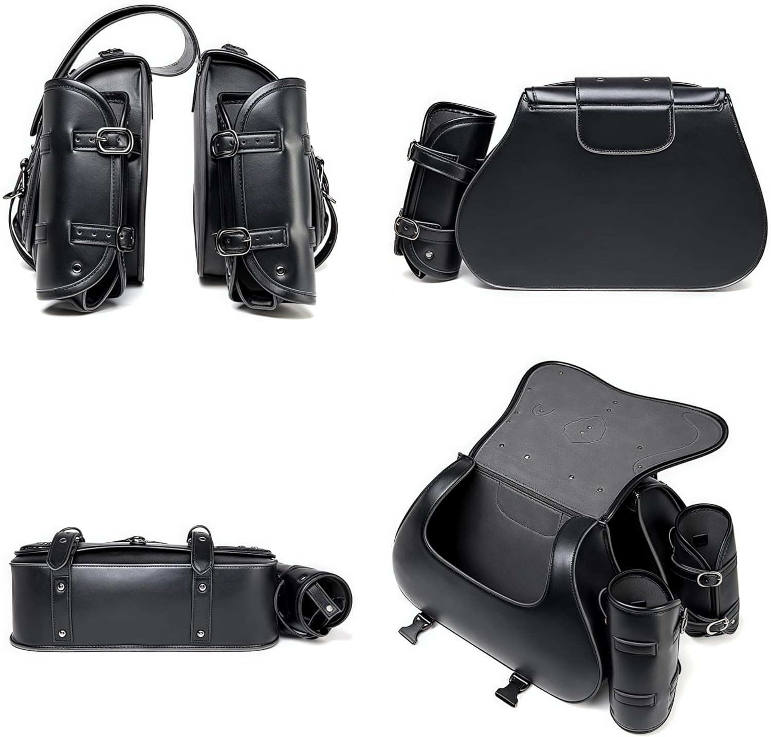 - ★【Premium PU Leather & Exquisite Metal Locks and Trim】-- Made of selected PU leather and high-quality polished hardware are made of exquisite and smooth edges of the bag, with exquisite paint spraying process, and the metal parts are polished smooth and bright. Compared with ordinary PVC leather saddle bags, it is not only more delicate and advanced, but also more durable, waterproof and scratch-resistant. The unique rivet streamline design exudes an elegant retro punk flavor, making your ride eye-catching and luxurious.