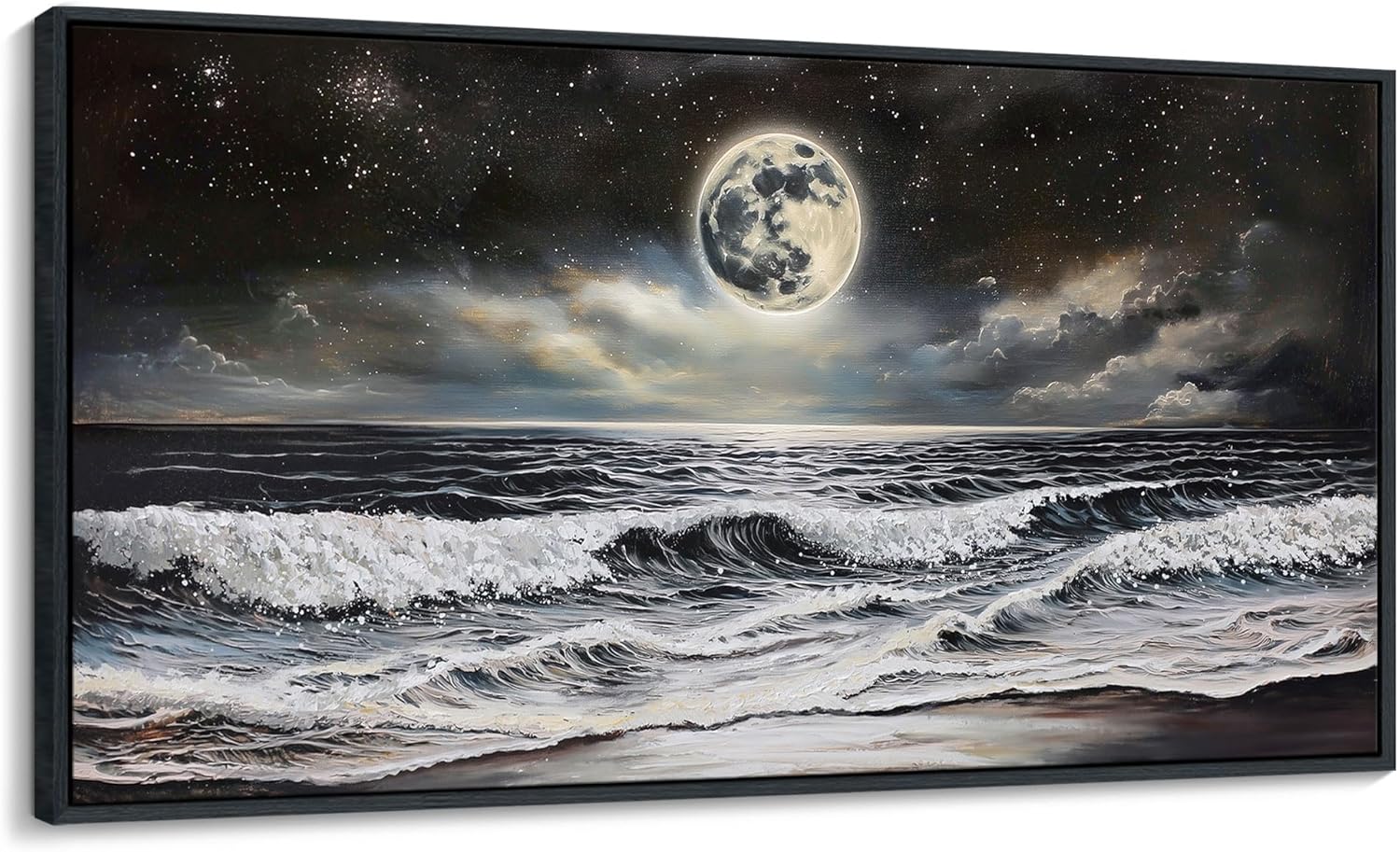 - Beach Pictures Wall Art: This beach canvas wall art presents a mesmerizing view of the ocean under a full moon.It brings the allure of a moonlit beach right into your home, perfect for those who love the mystery and beauty of the night sea.