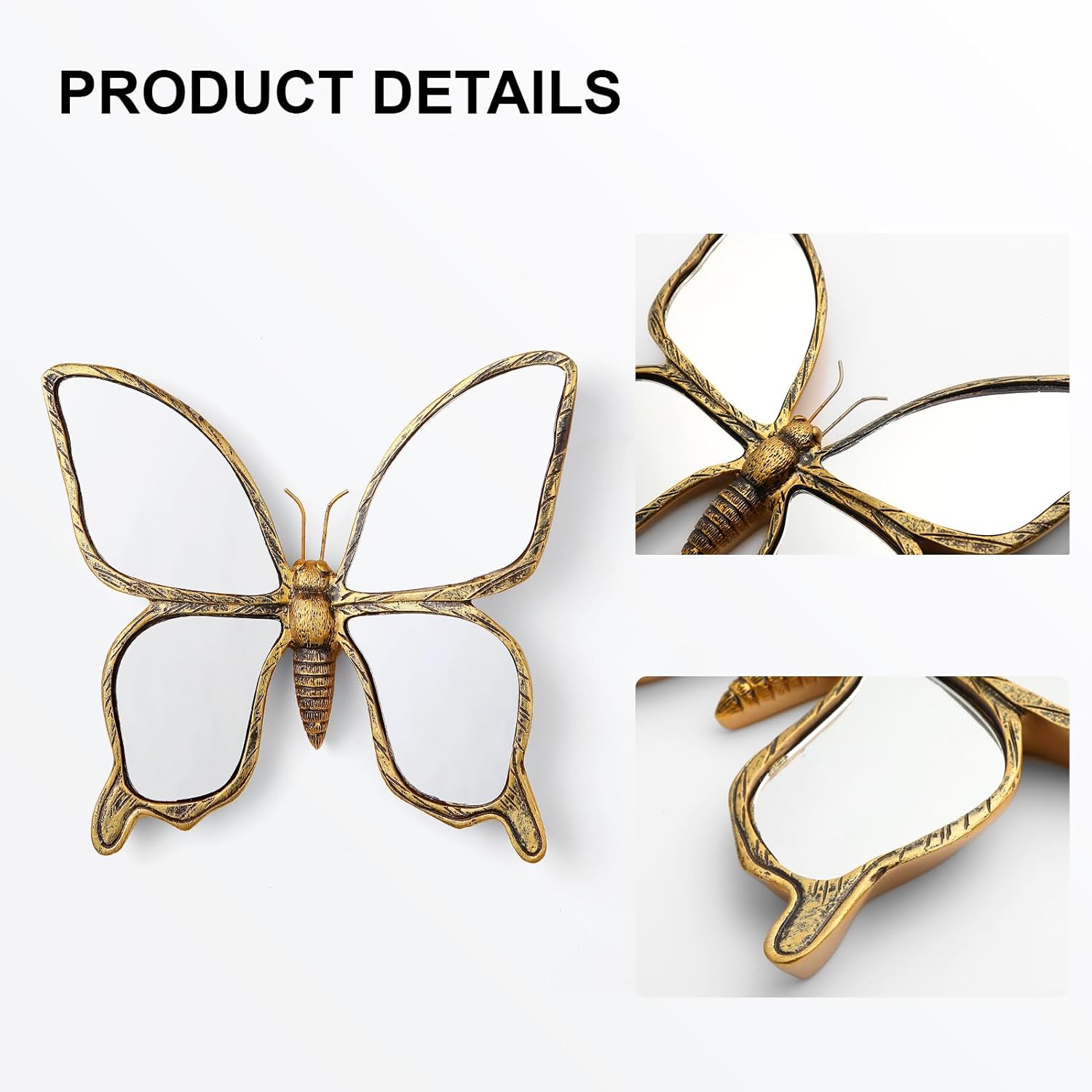 Decorative Bug Insects Animals Beetle Mirrors - Gold Resin Butterfly Glass Wall Decor, Perfect for Victorian and European Themed Homes