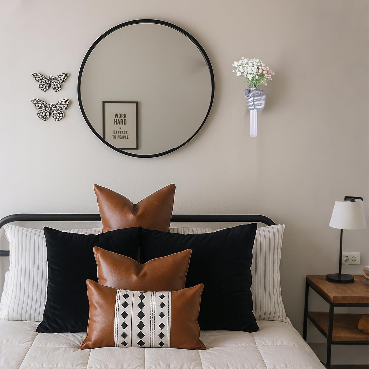 Silvery Wall Sculptures, Hand Vases Home Decor, Wall Mount Art Sculpture, Unique Wall Art Statue, Funky Flower Vase Decorations, Modern Eclectic Hanging Decor,Glass Test Tube Vase (Silvery)