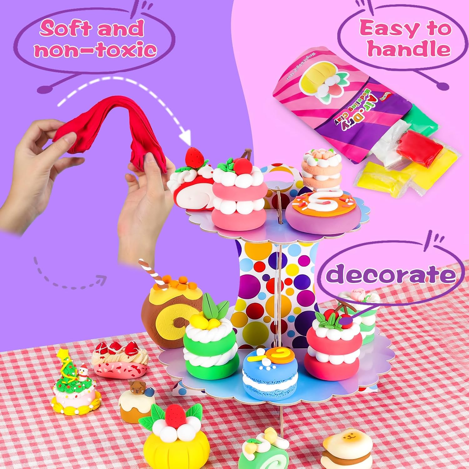 ifergoo Air Dry Clay Kit for Kids - Cakes Modeling Clay, Includes 6 Dessert Designs and Display Stand, DIY Art & Crafts School Projects, Home Party Kids Toys, Holidays Gifts for Age 3-12 Girls & Boys