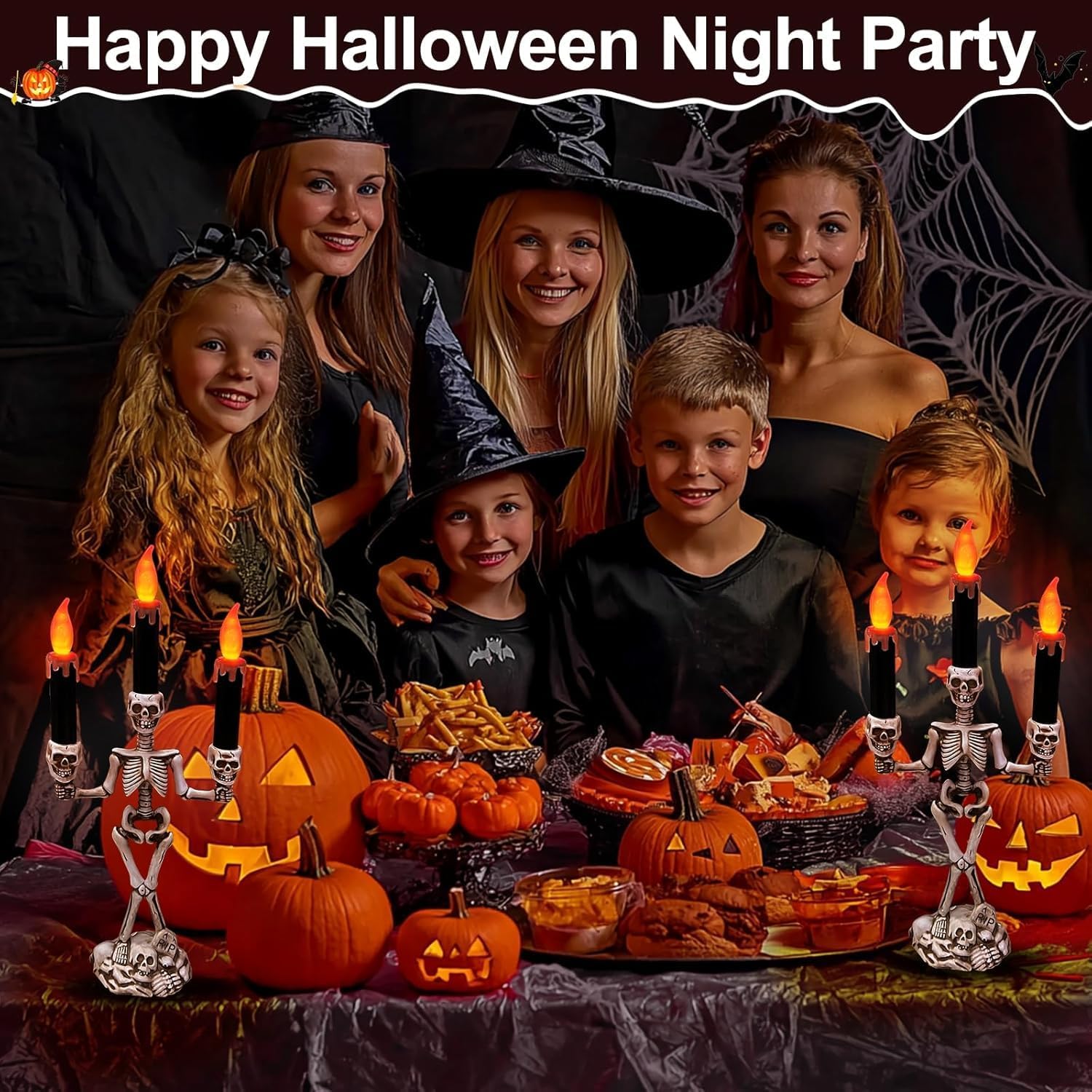 TURNMEON 2 Pack Halloween Candelabra with LED Flame Less Candles Holder Battery Operated Flickering Lights Skull Candles for Halloween Decorations Indoor Home Table Mantel Party Haunted Mansion Decor