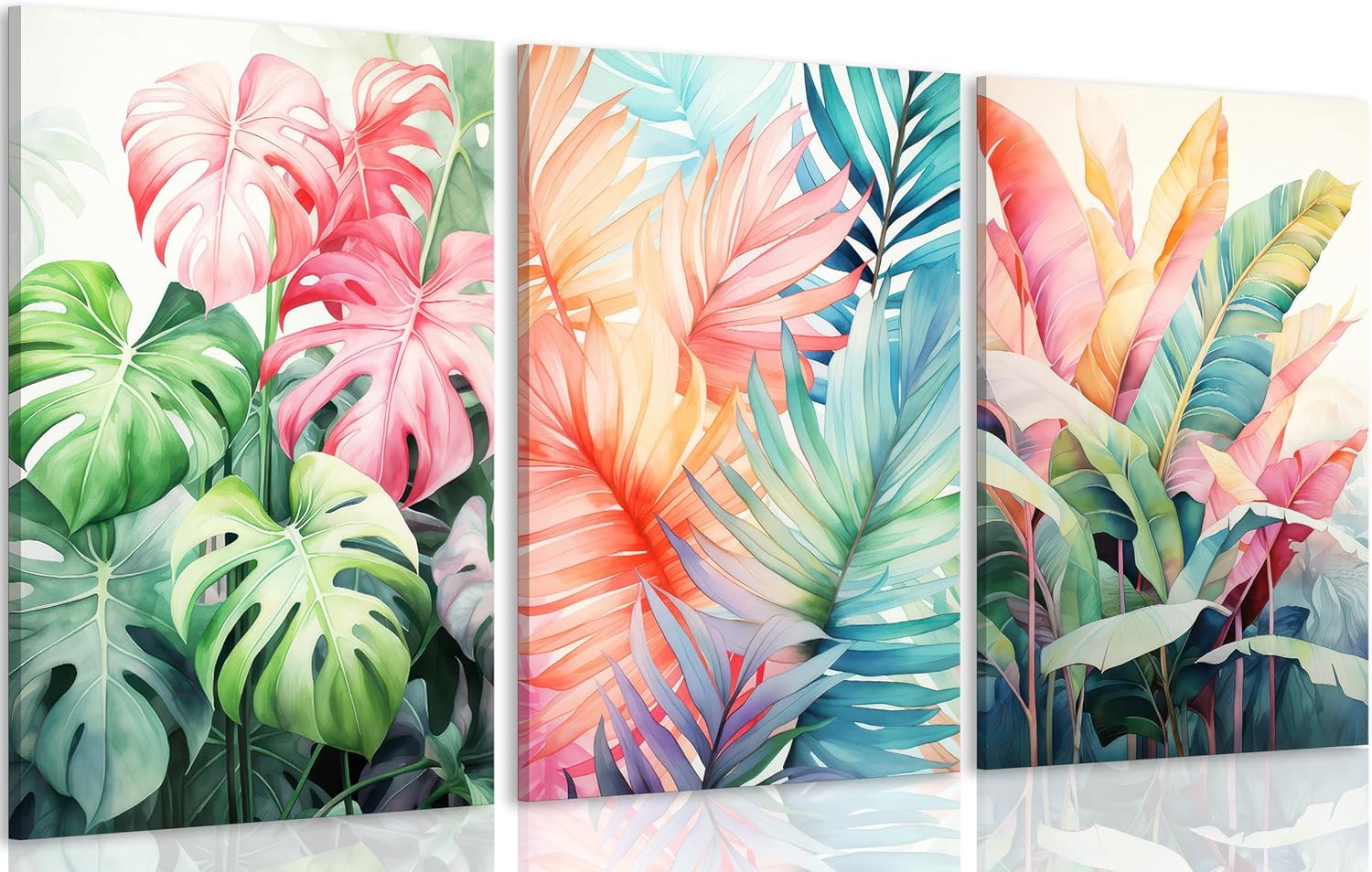 3pcs Framed Tropical Botanical Canvas Wall Art Monstera Leaves Posters Botanical Prints Bohemian style Wall Decor Pictures Palm Leaves Paintings for Bathroom living room Decoration
