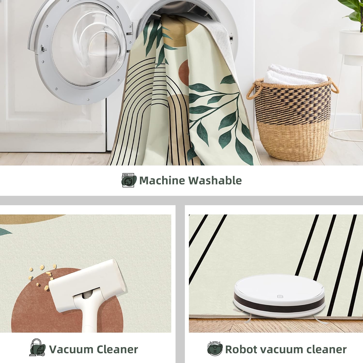 Indoor Outdoor Area Rug, Mid Century Sun Outdoor Patio Rug,Washable Abstract Art Leaves Eucalyptus Runway Rugs Non-Slip Carpet for Camping, Bedroom, Deck(8x10)
