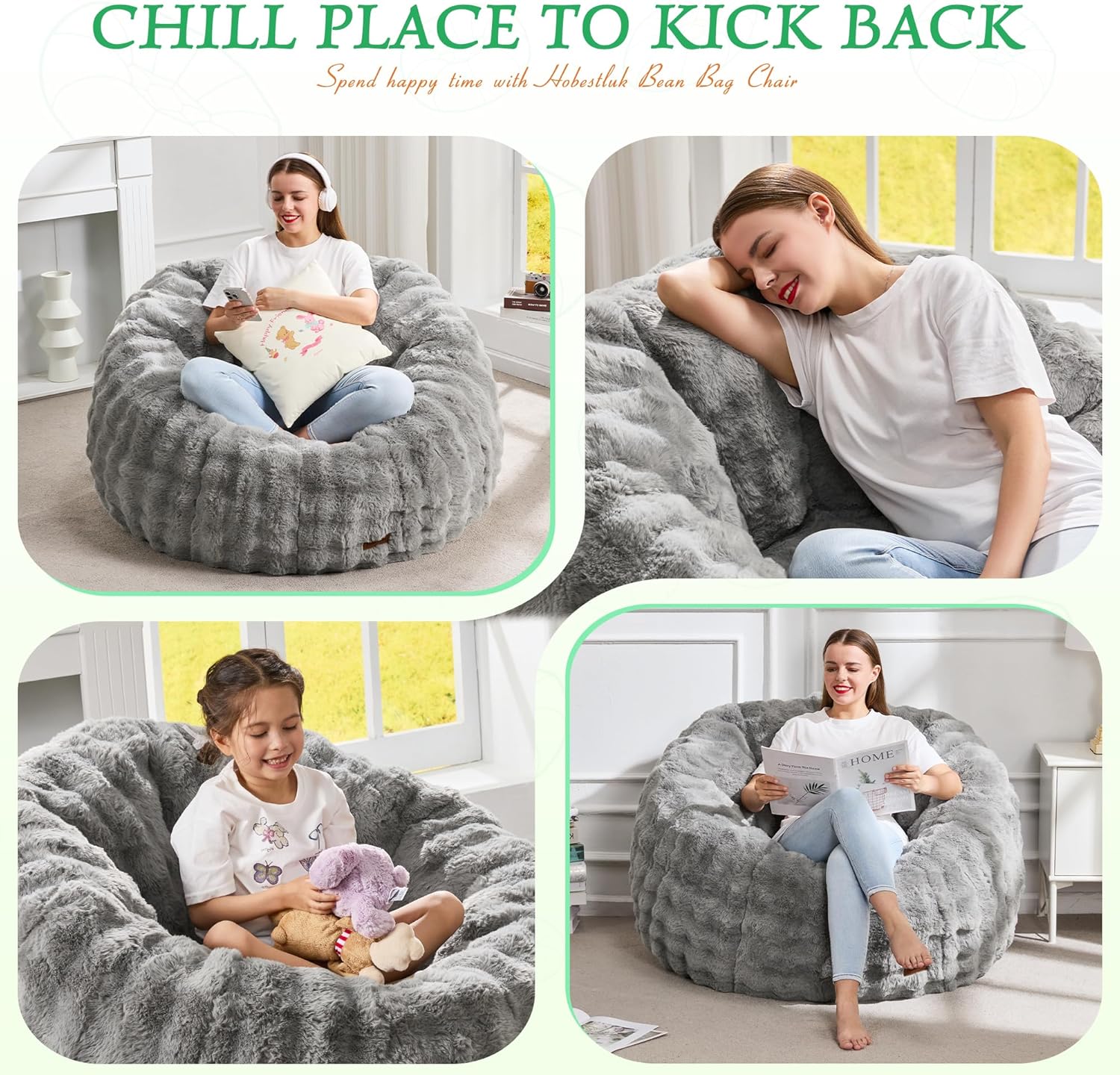 - Convenient and No-Assembly: Experience seamless setup with this bean bag chair, including filler.Simply open the compressed package and let the huge bean bag expand over 48 hours. Once fully expanded, you can recline and indulge in a delightful experience.
