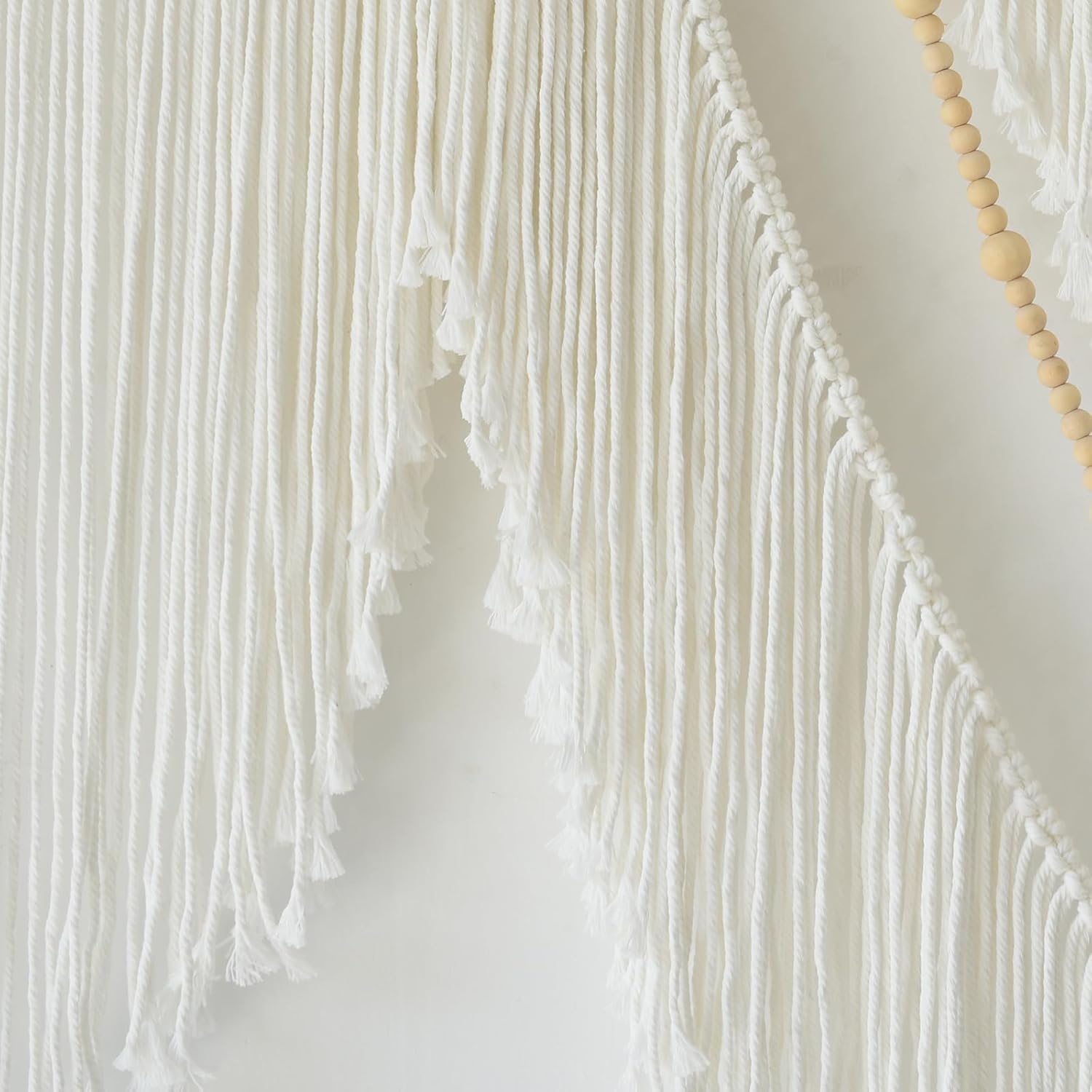 Flber Large Macrame Wall Hanging – Boho Yarn Art Garland with Tassels and Beads, Handmade Rope Decor for Nursery, Party, Wedding, Bedroom, Fireplace Mantel, or Photo Backdrop 57" W x 41" L