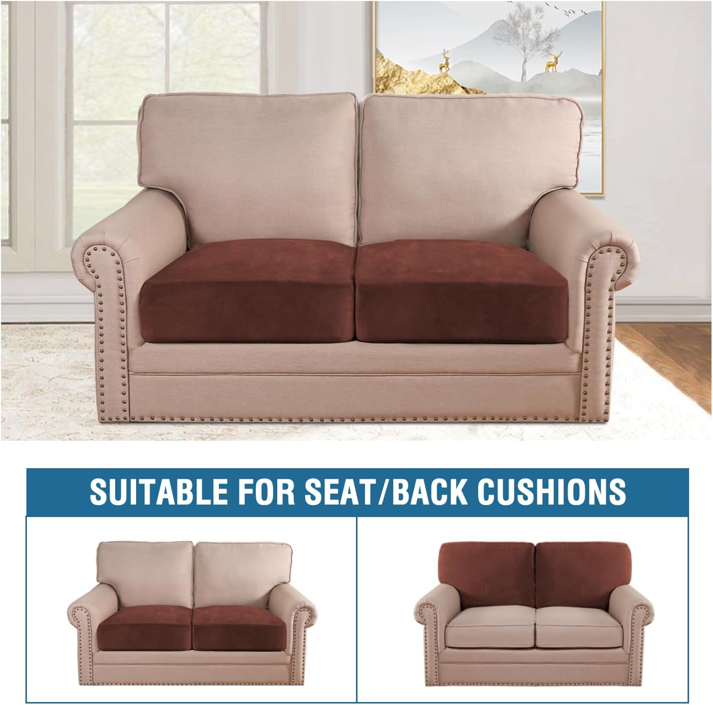 H.VERSAILTEX Velvet Stretch Couch Cushion Cover Plush Cushion Slipcover for Chair Loveseat Sofa Cushion Furniture Protector Seat Cushion Sofa Cover (2 Piece Large Sofa Cushion Covers, Burnt Brick)
