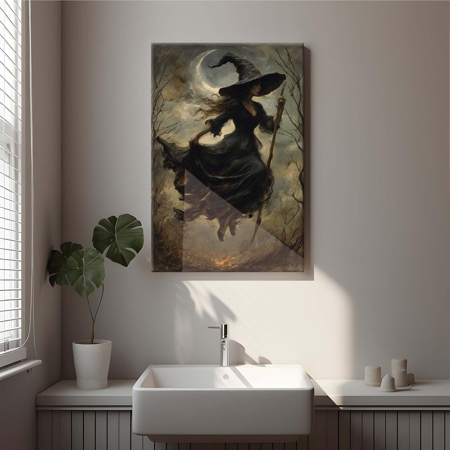 JFHCQJPK Witch in the Forest Halloween Print Wall Art Poster Witch Decor Vintage Print Dark College Wall Art Victorian Gothic Room Decor Canvas Wall Print8x12in Frameless