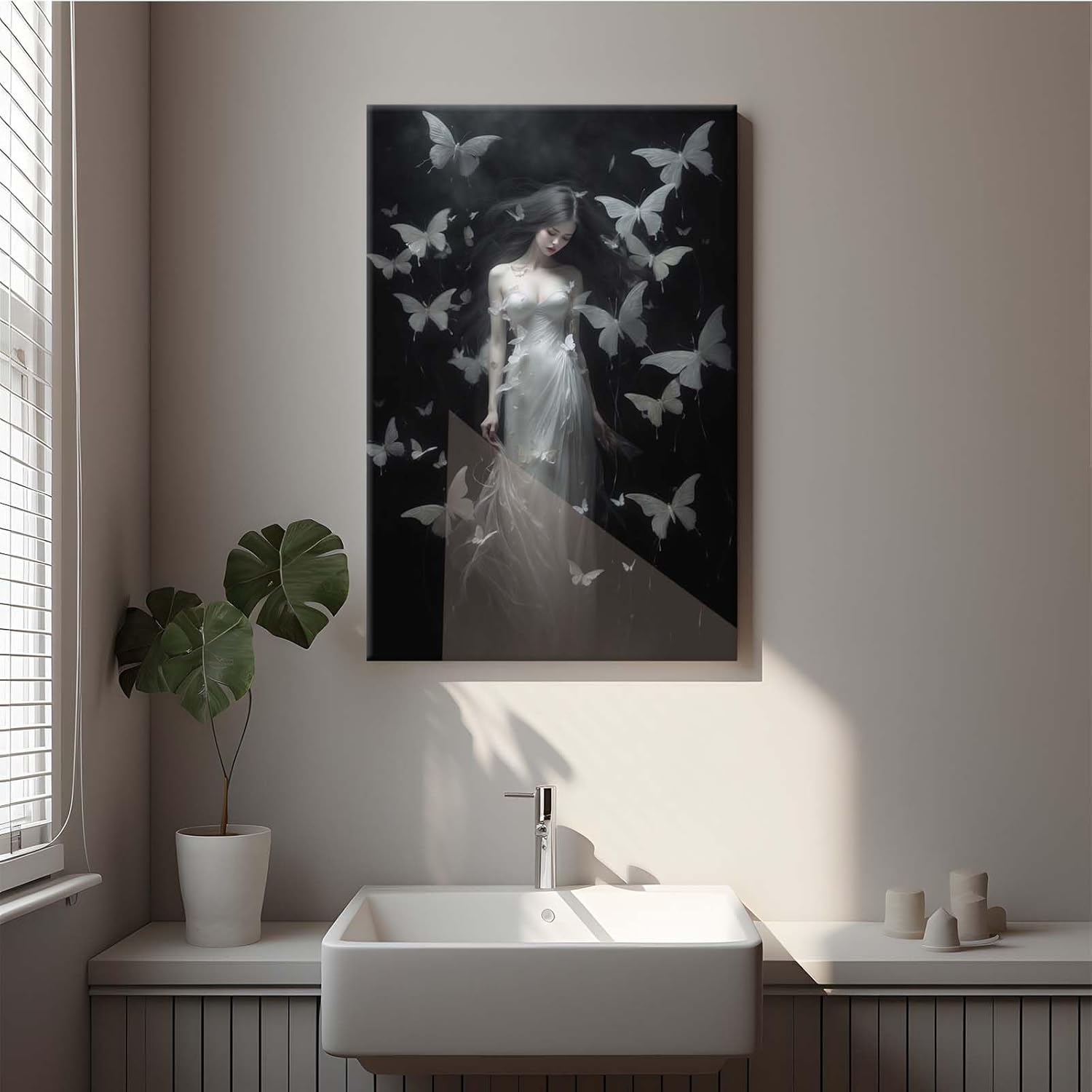 Vintage Gothic Feminine Canvas Wall Art Print Butterfly Poster Moody Female Wall Art Retro Artwork Dark College Decor for Home Bedroom12x16in Wood Framed