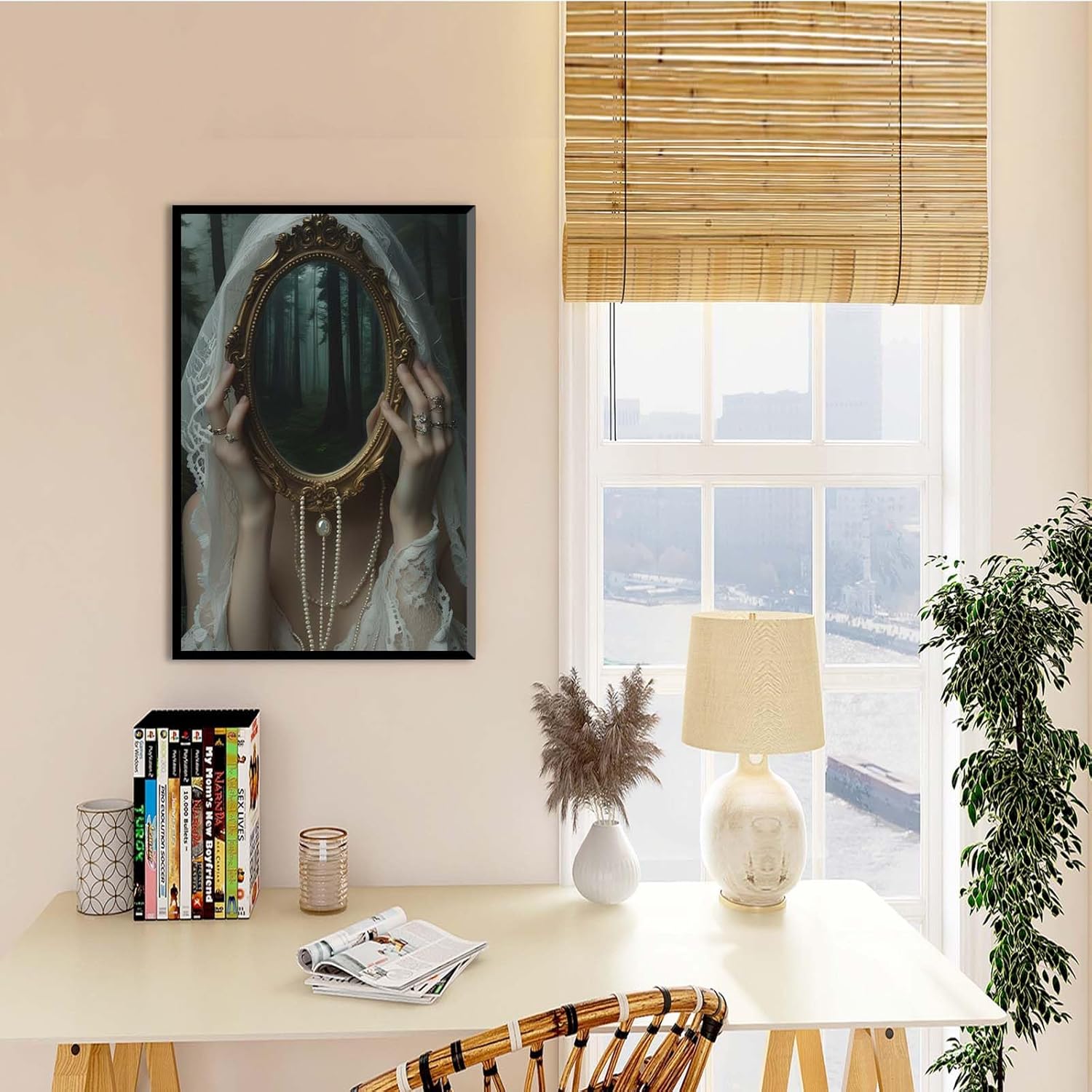 Mirror face covering dark art poster print melancholy gothic painting vintage feminine print victorian style decoration antique art8x12in Metal blackFramed