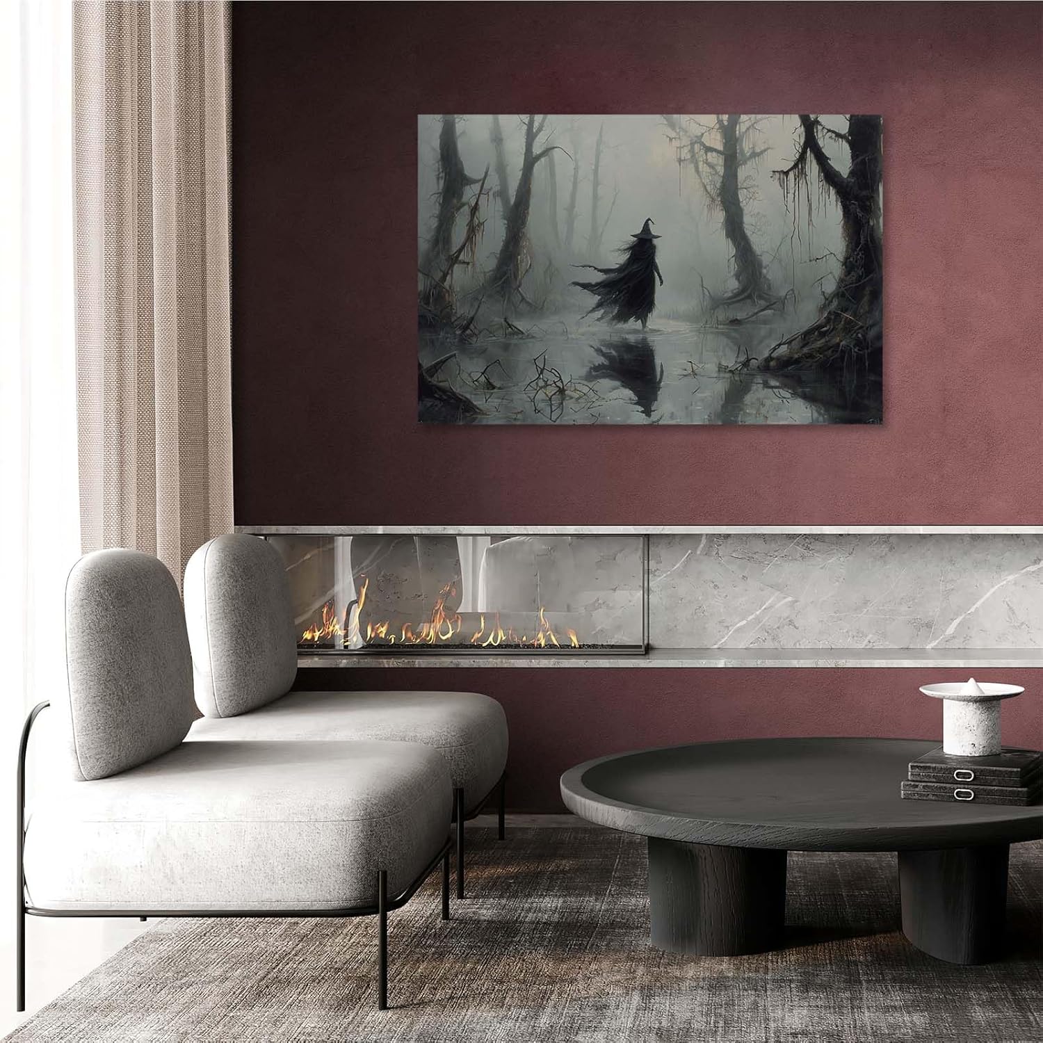 Vintage rustic swamp witch poster dark moody wall art gothic horror season halloween print for home decor retro dark moody painting24x36in Wood Framed