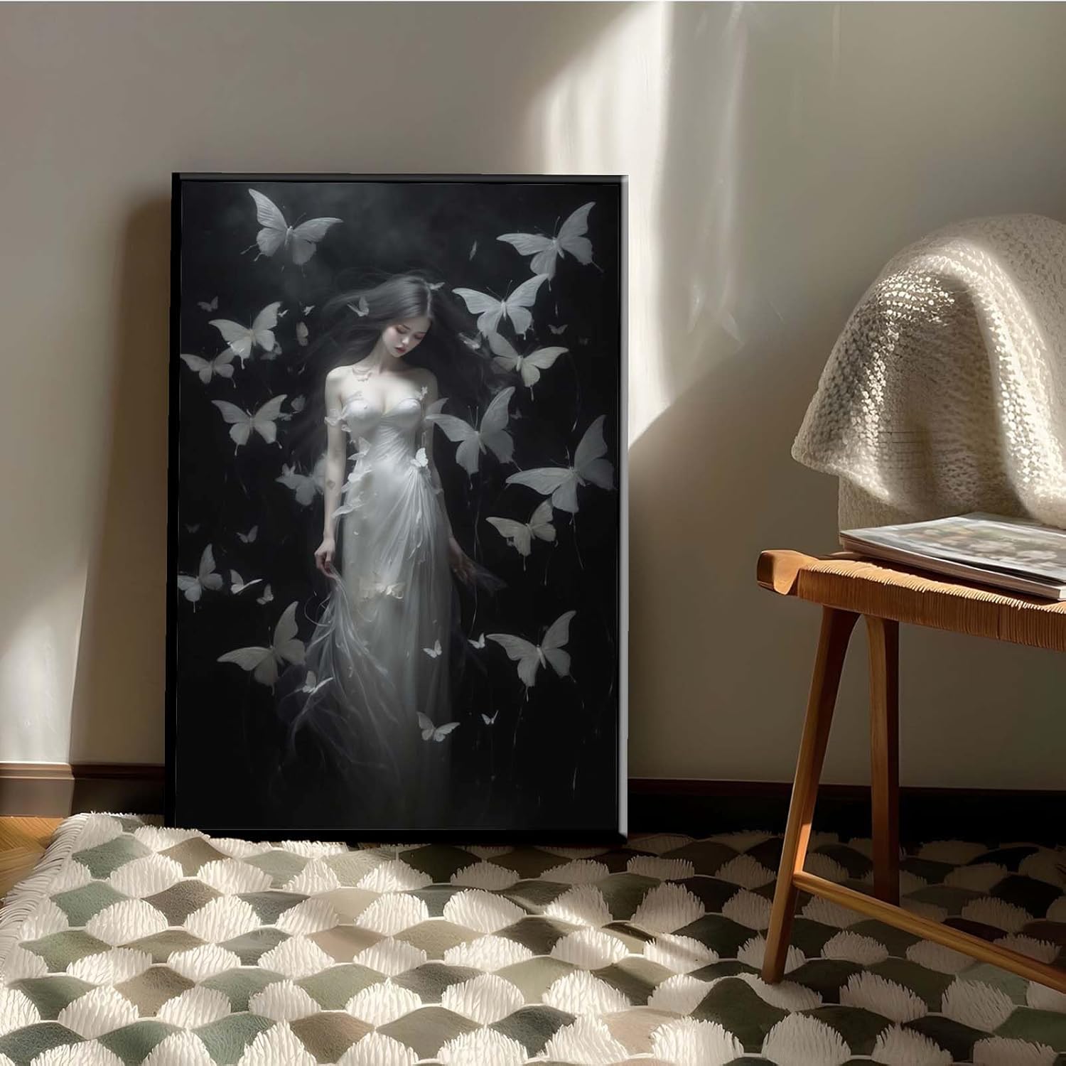 JFHCQJPK Vintage Gothic Feminine Canvas Wall Art Print Butterfly Poster Moody Female Wall Art Retro Artwork Dark College Decor for Home Bedroom16x24in Metal blackFramed