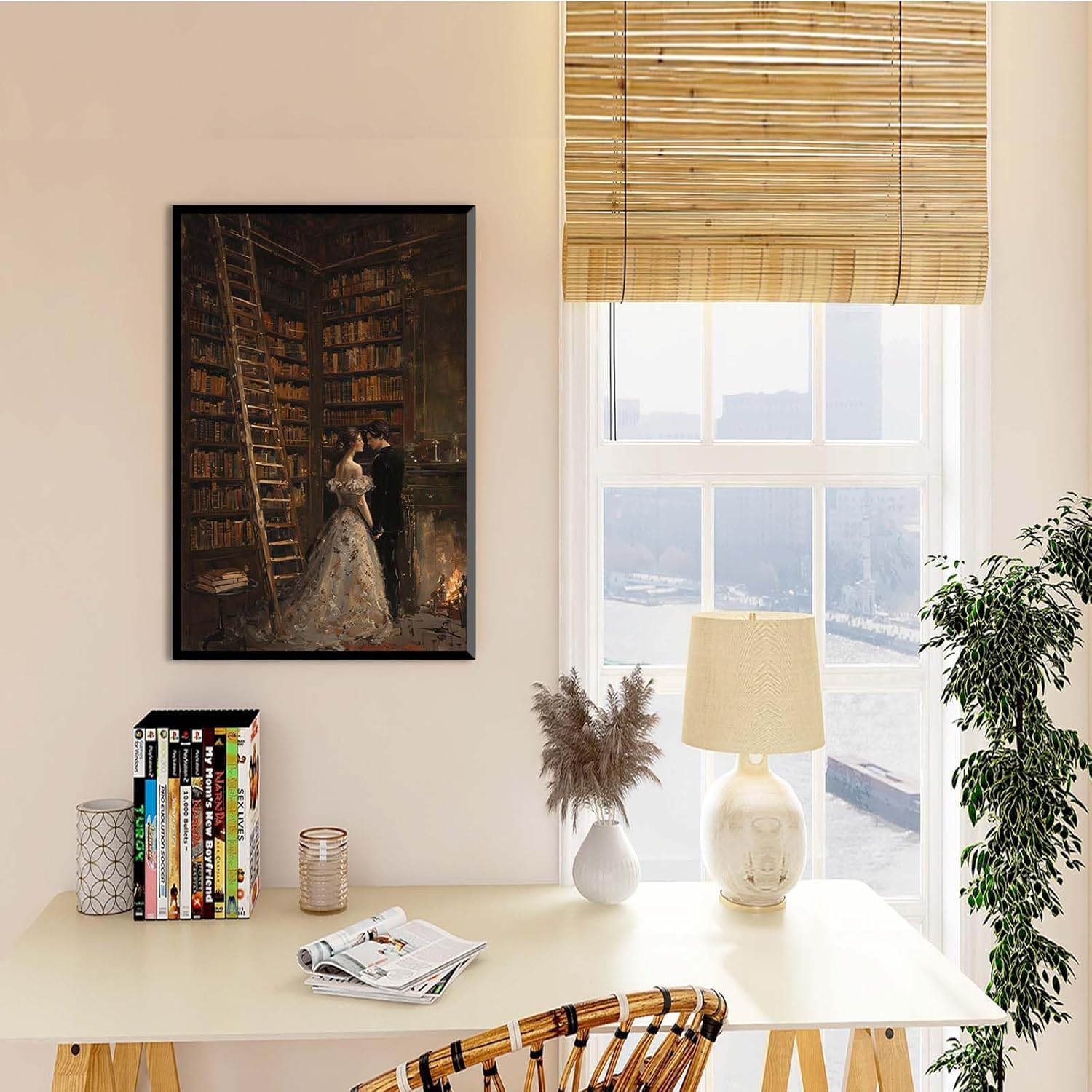 JFHCQJPK Gothic retro library scene decoration melancholy calm art college style wall aesthetic antique style home decoration suitable for bedroom living room16x24in Metal blackFramed