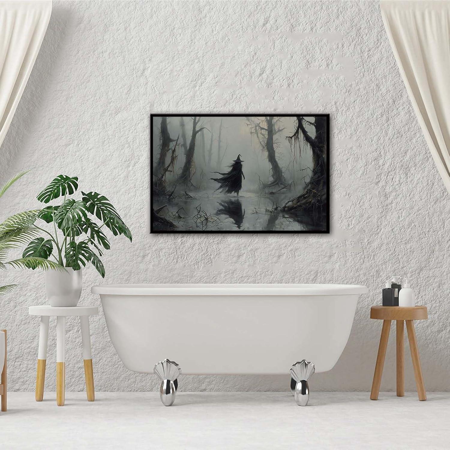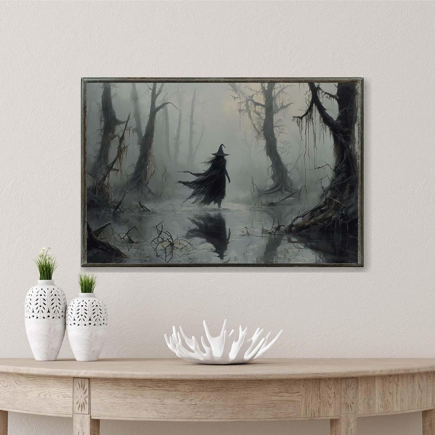 JFHCQJPK Vintage rustic swamp witch poster dark moody wall art gothic horror season halloween print for home decor retro dark moody painting20x30in Metal blackFramed