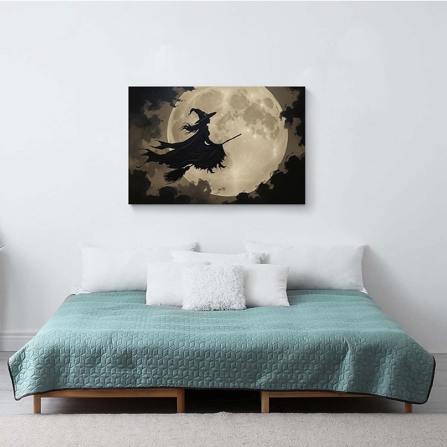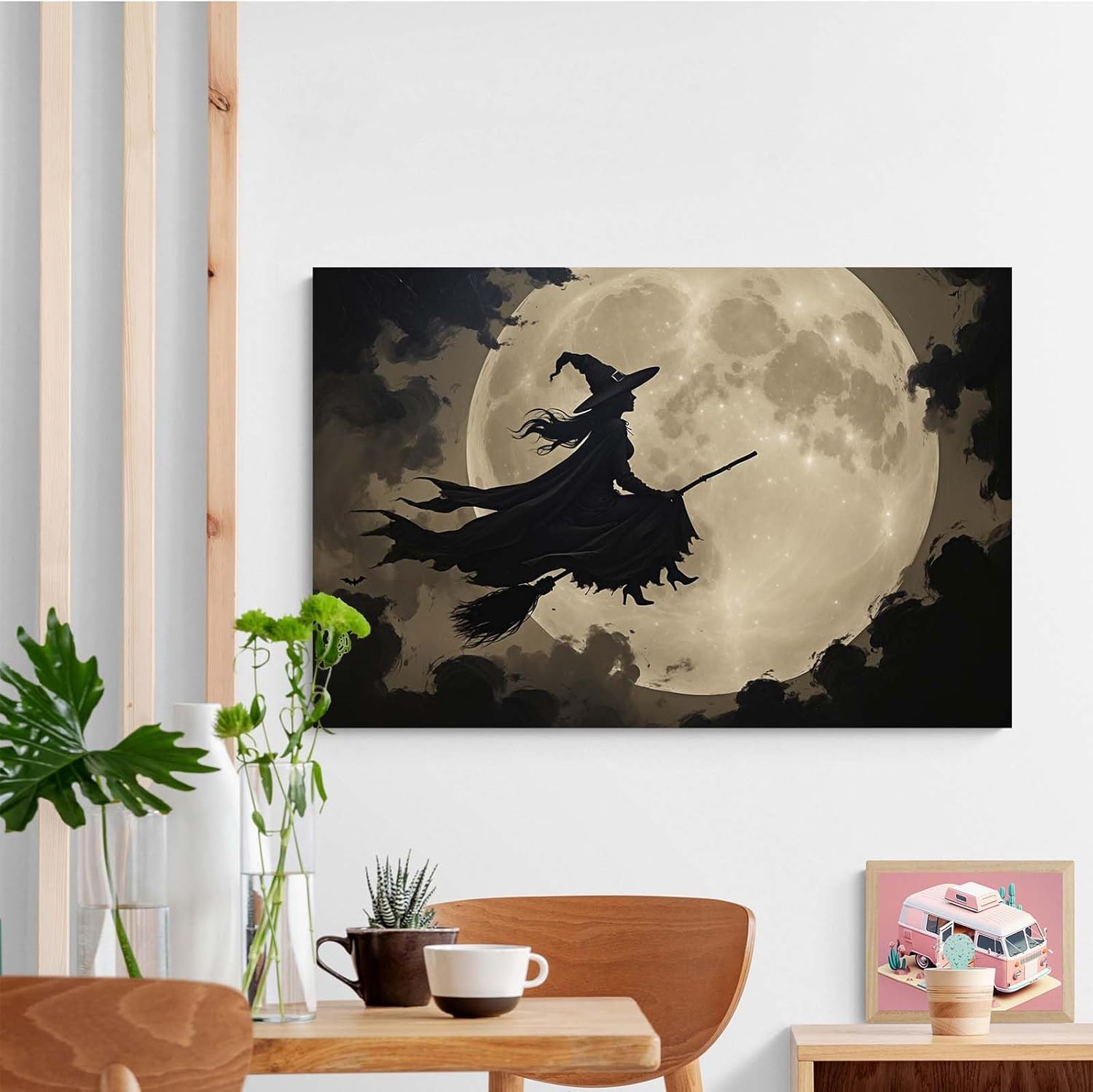 JFHCQJPK Full moon witch silhouette poster witch on magic broom Halloween mural poster decorative mural art suitable for home living room bedroom20x30in Frameless