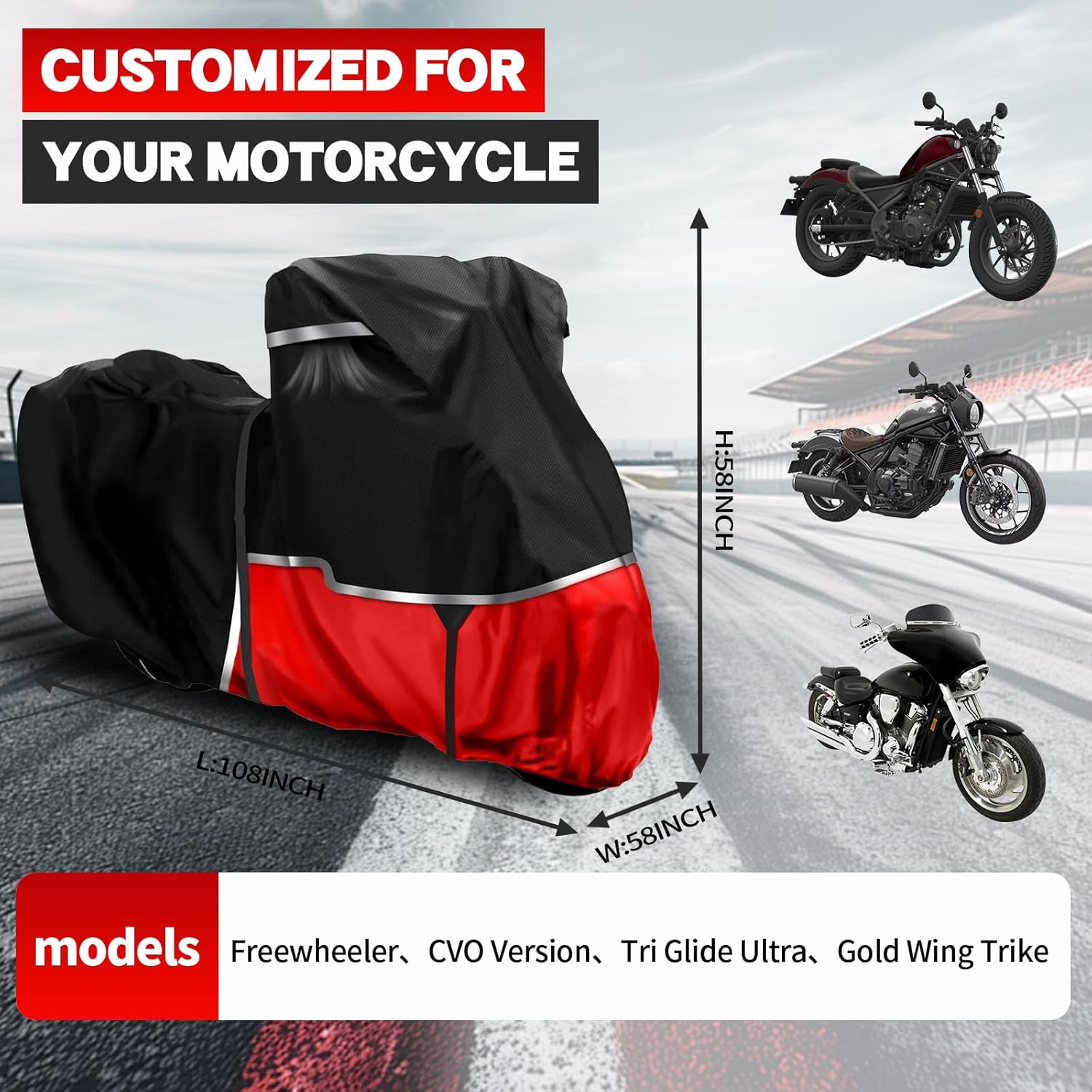 - Premium 420D Oxford Fabric with Triple Coating: Made from heavy-duty 420D Oxford fabric, this waterproof motorcycle cover features an inner nano-material triple coating for a smooth, scratch-free surface. Reinforced seams with waterproof strips and double stitching ensure superior protection against rain (up to 8000MM water pressure). Avoid sharp ornaments to prevent damage