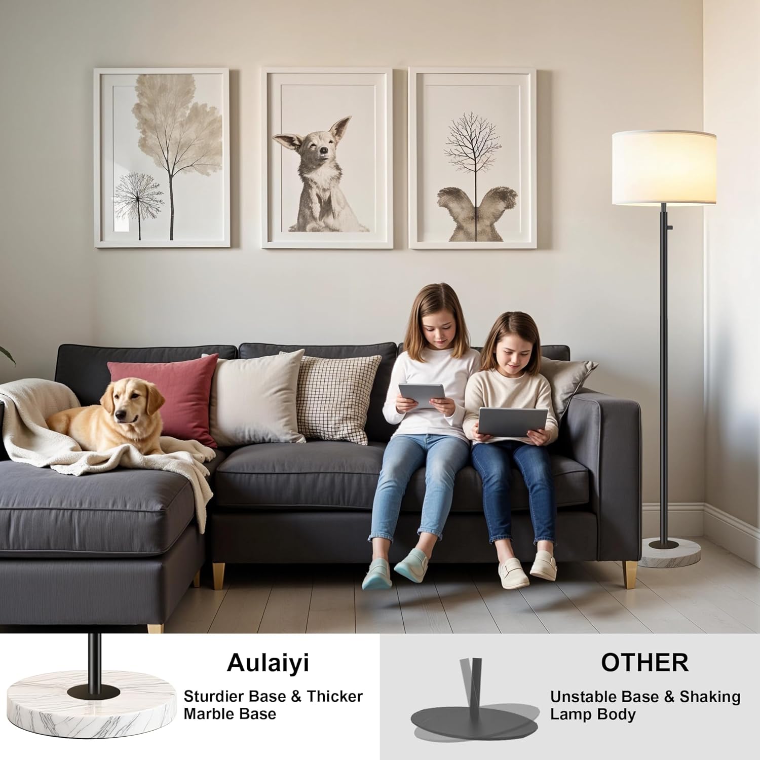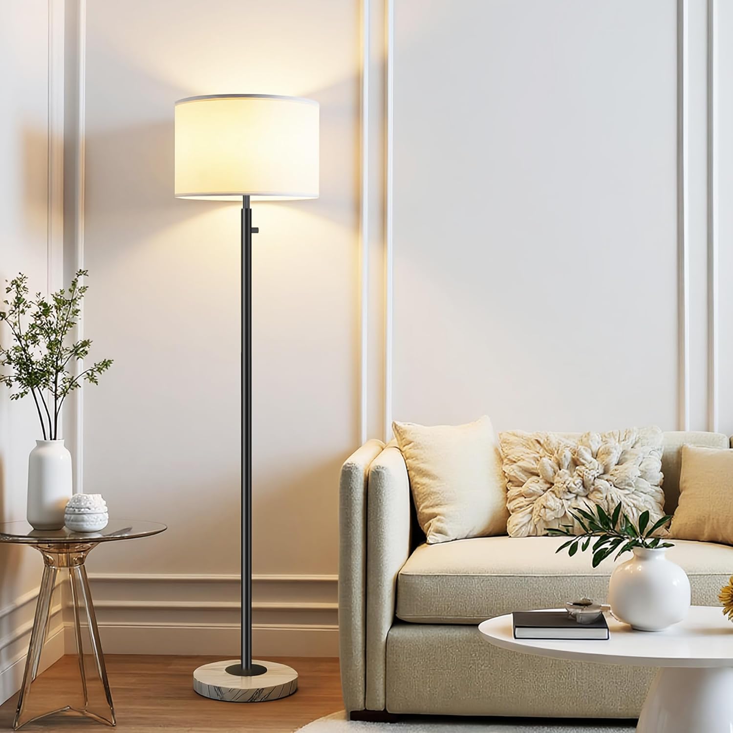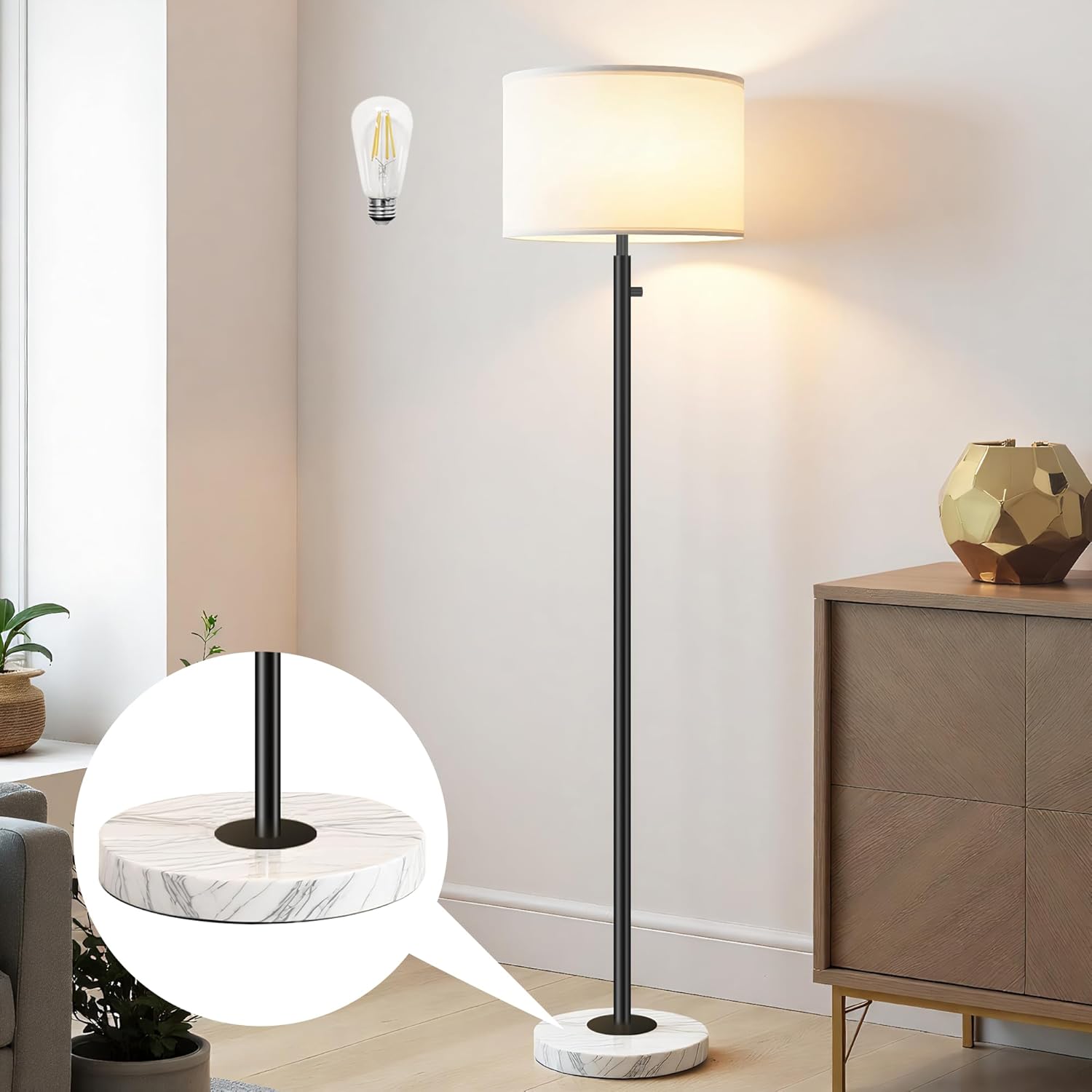 - Stable Marble Base & Space-Saving Design: Our floor lamp features a high-quality marble base for enhanced stability and added safety. This compact tall standing lamp fits easily in any corner or beside furniture—ideal for kids' rooms, next to bedside tables, office desks, nightstands, or sofas.