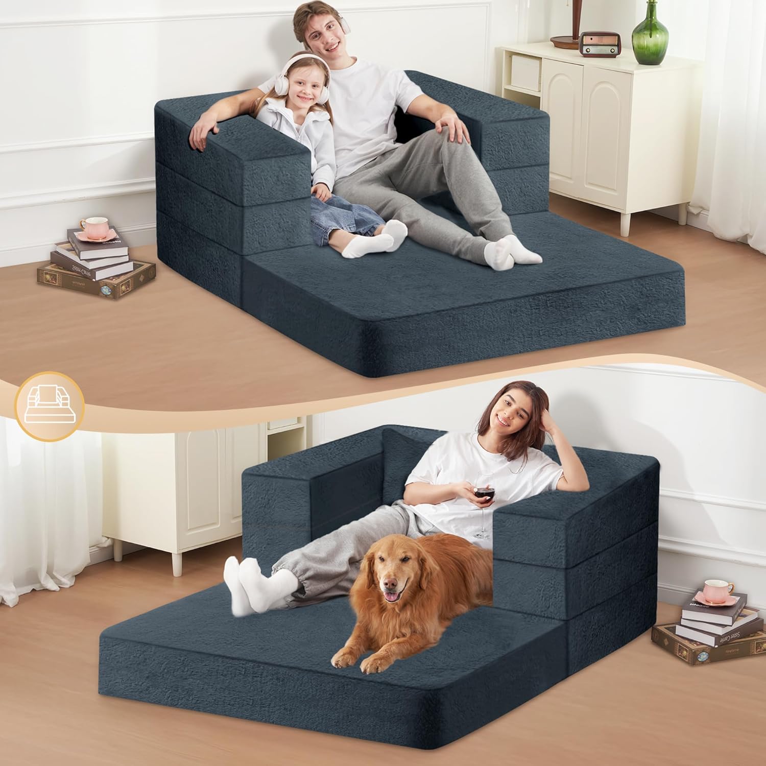 - 【Mulitpurpose & Space Saver】Our small floor couch has three forms, which can be easily converted into a sofa, a lounger and a dog bed to satisfy your different needs. Good for places with limited small space, like living room, guestroom, apartment, college dorms, playroom, loft, bedroom, RV and camp.