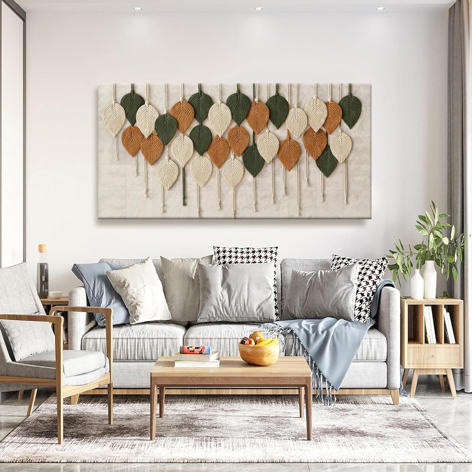 Boho Wall Modern Wall Art Print Paintings Leaves Feather Multicolor Canvas Wall Art Decor For Living Room Bedroom Apartment Kitchen Home Wall Decor 24"W X 48"L Ready To Hanging