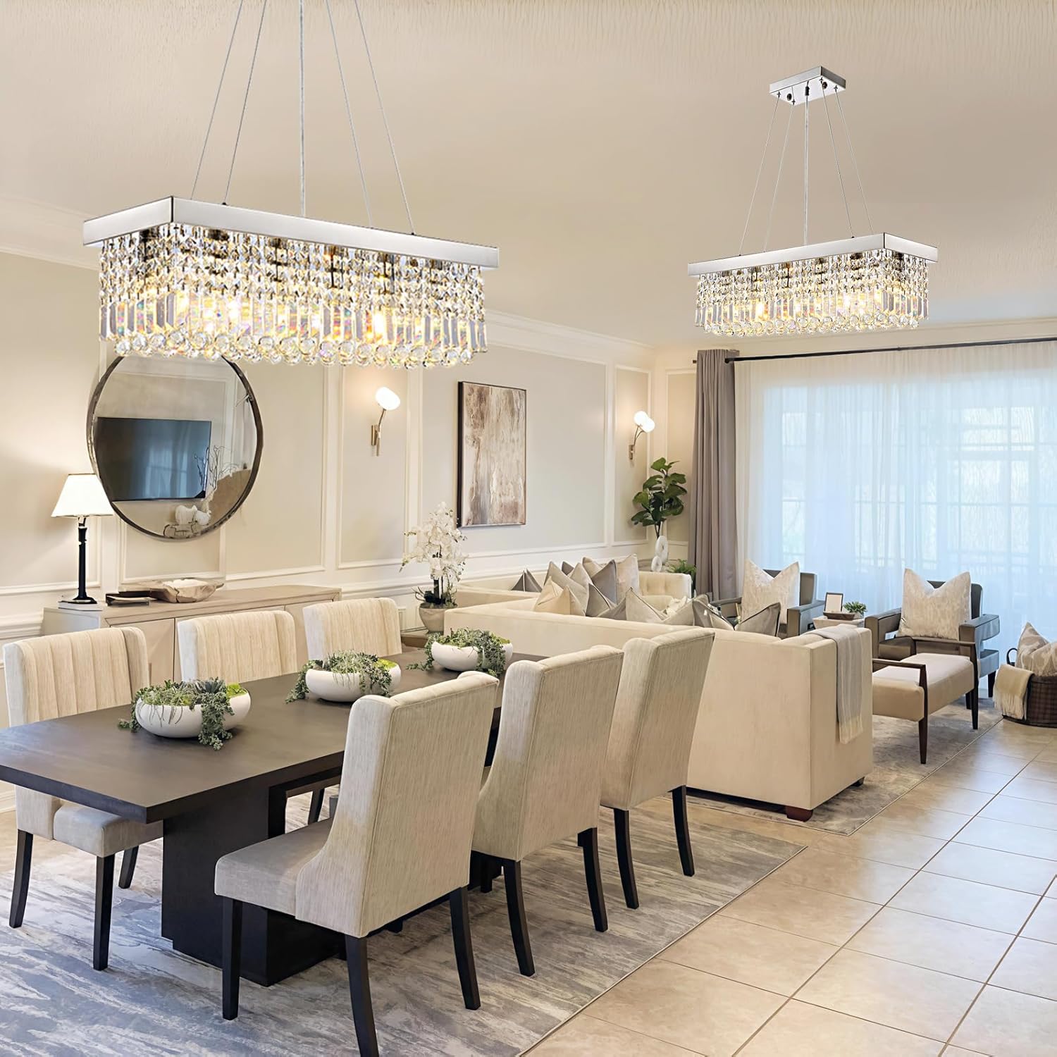 - EASY INSTALLATION: This rectangle modern chandelier comes with all necessary mounting hardware and a detailed instruction manual for quick, hassle-free setup. The user-friendly design and secure packaging ensure that each crystal arrives intact – your new chandelier will be ready to shine in your foyer, dining area, or kitchen with minimal effort.