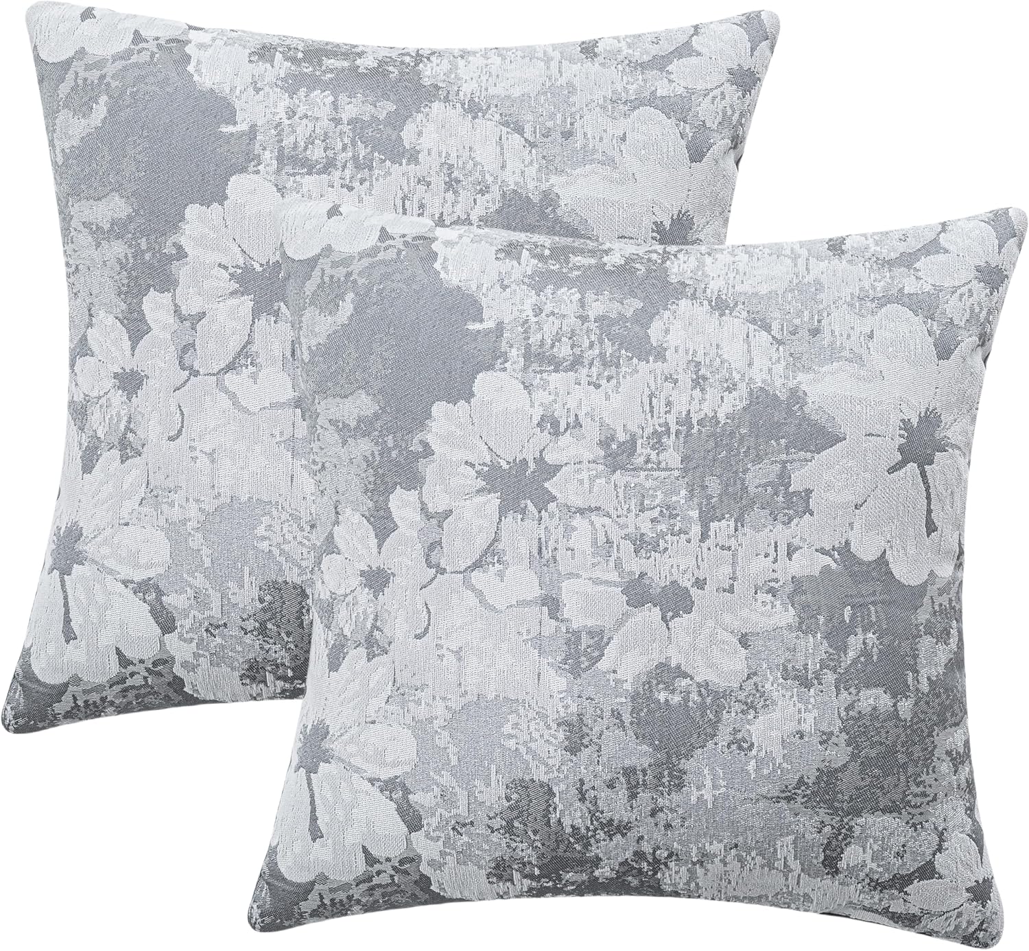 Jacquard Throw Pillow Covers 18x18 Inch Set of 2 - Vintage Floral Boho Pillow Cases with Botanical Pattern | Farmhouse Decor for Couch Living Room | Soft Textured Neutral Trio Slate Gray 18" x 18"