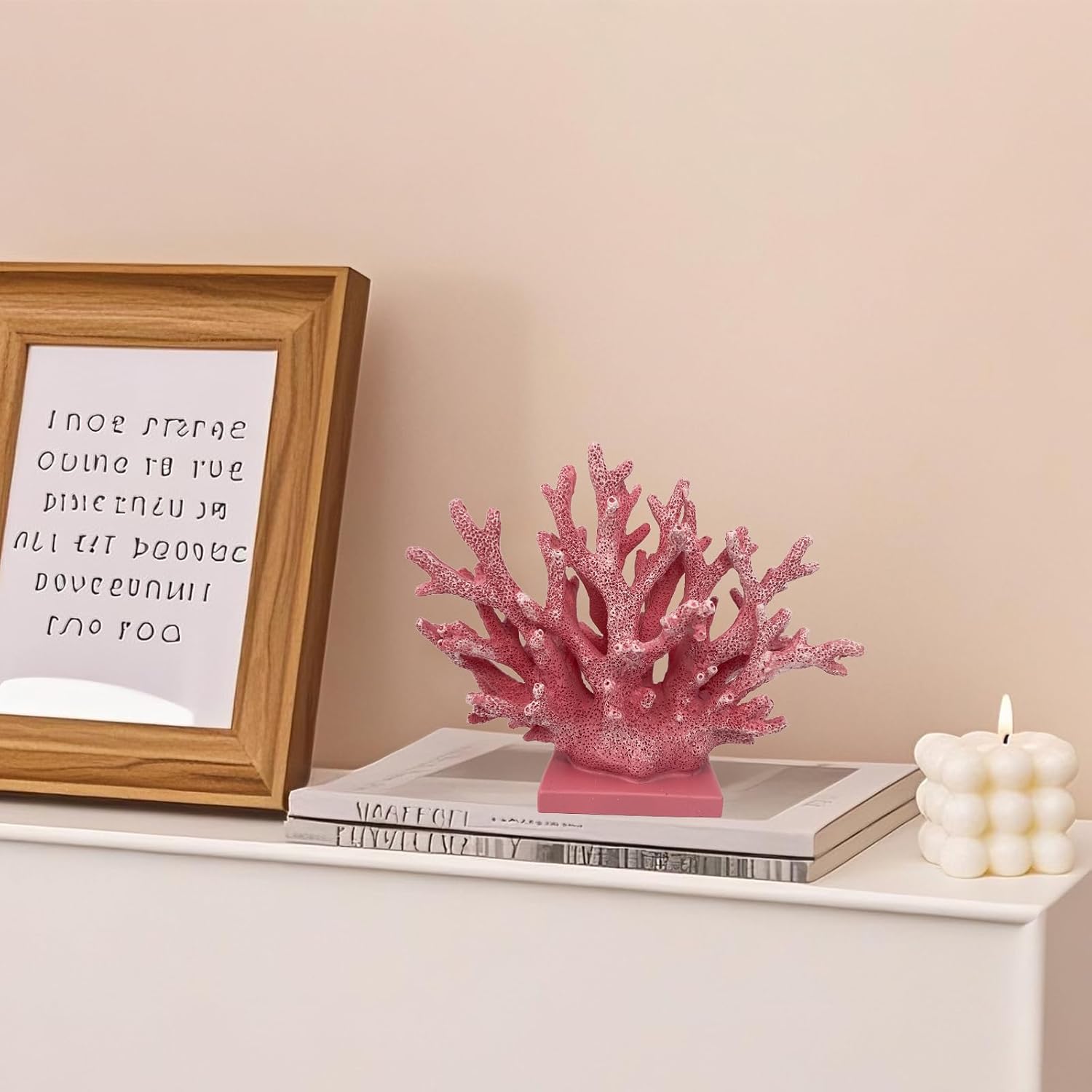 5.8" H Pink Coral Decor - Resin Coral Statue, Nautical Decor for Home, Bedroom, Bathroom, Living Room, Ocean Themed Cabinet Shelf Tabletop Decoration