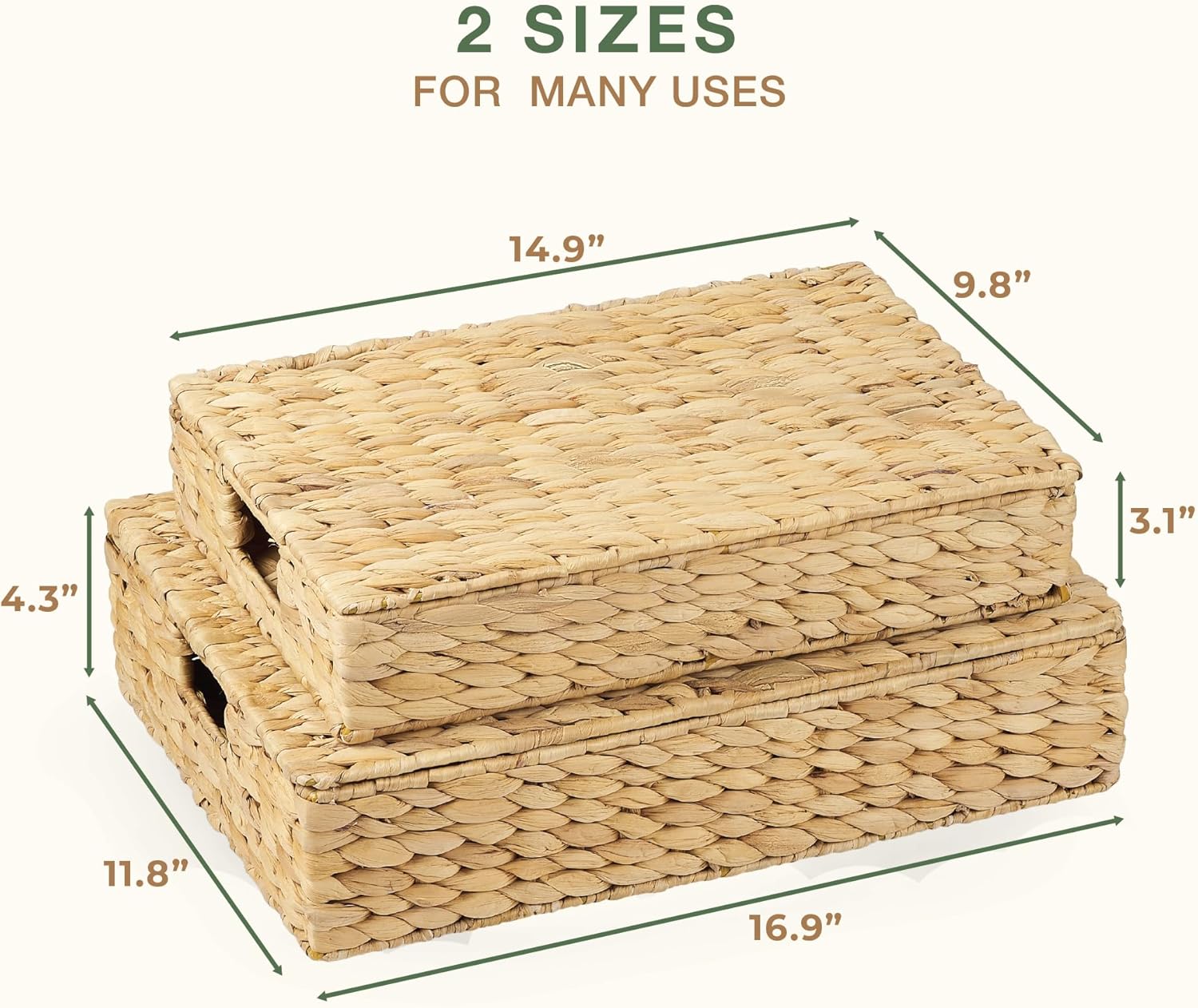 - Versatile Storage Solution: Use these wicker storage baskets with lid to neatly organize mail, office supplies, remote controls, chargers, data cables, makeups, socks, or underwear, keeping your essentials within easy reach but out of sight.