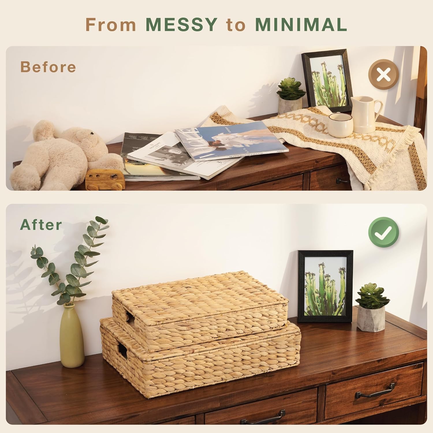 - Instant Clutter Control: These woven baskets with lid are perfect for quickly tidying up any space. Effortlessly conceal clutter and maintain a neat, organized look in your living room, bedroom, bathroom, or office.