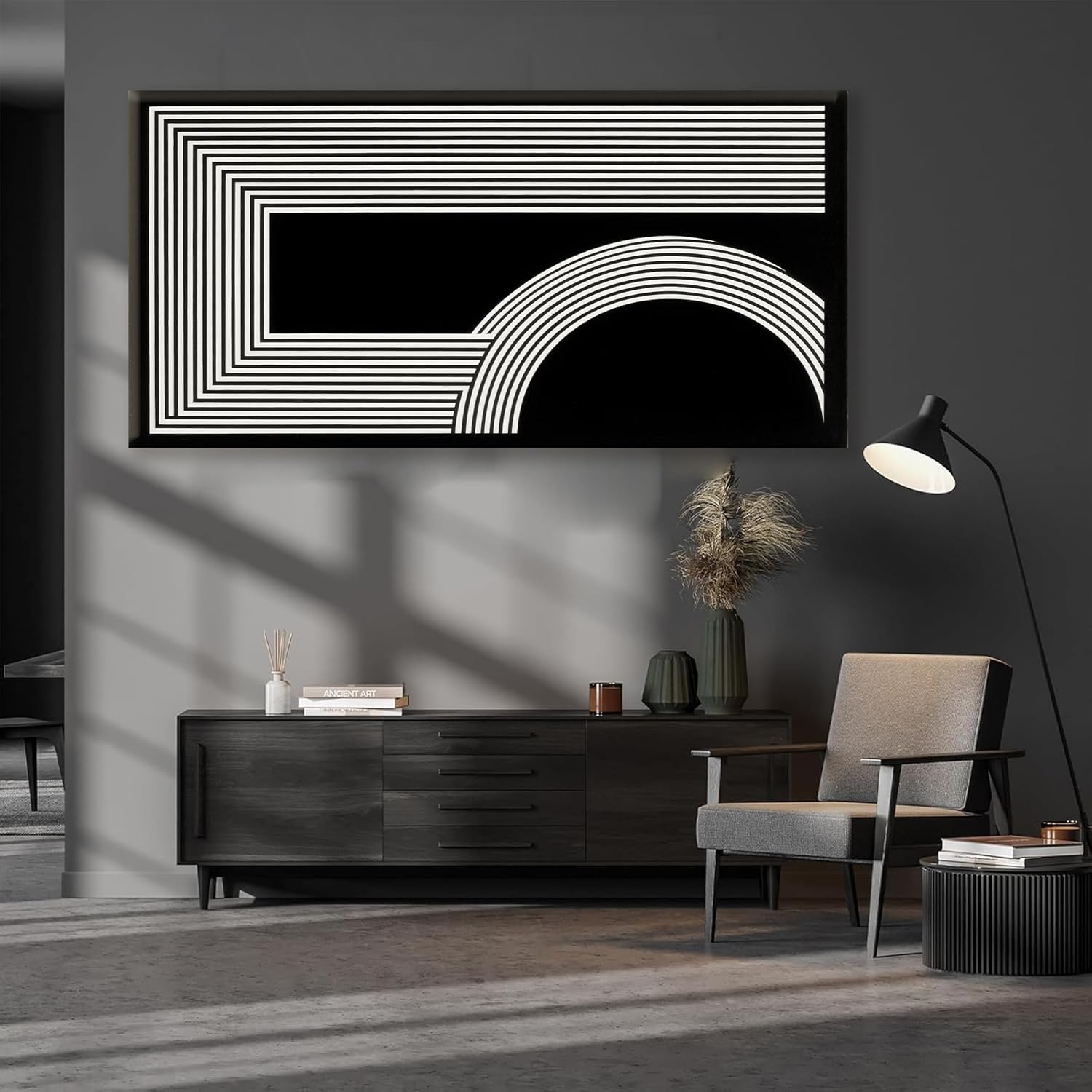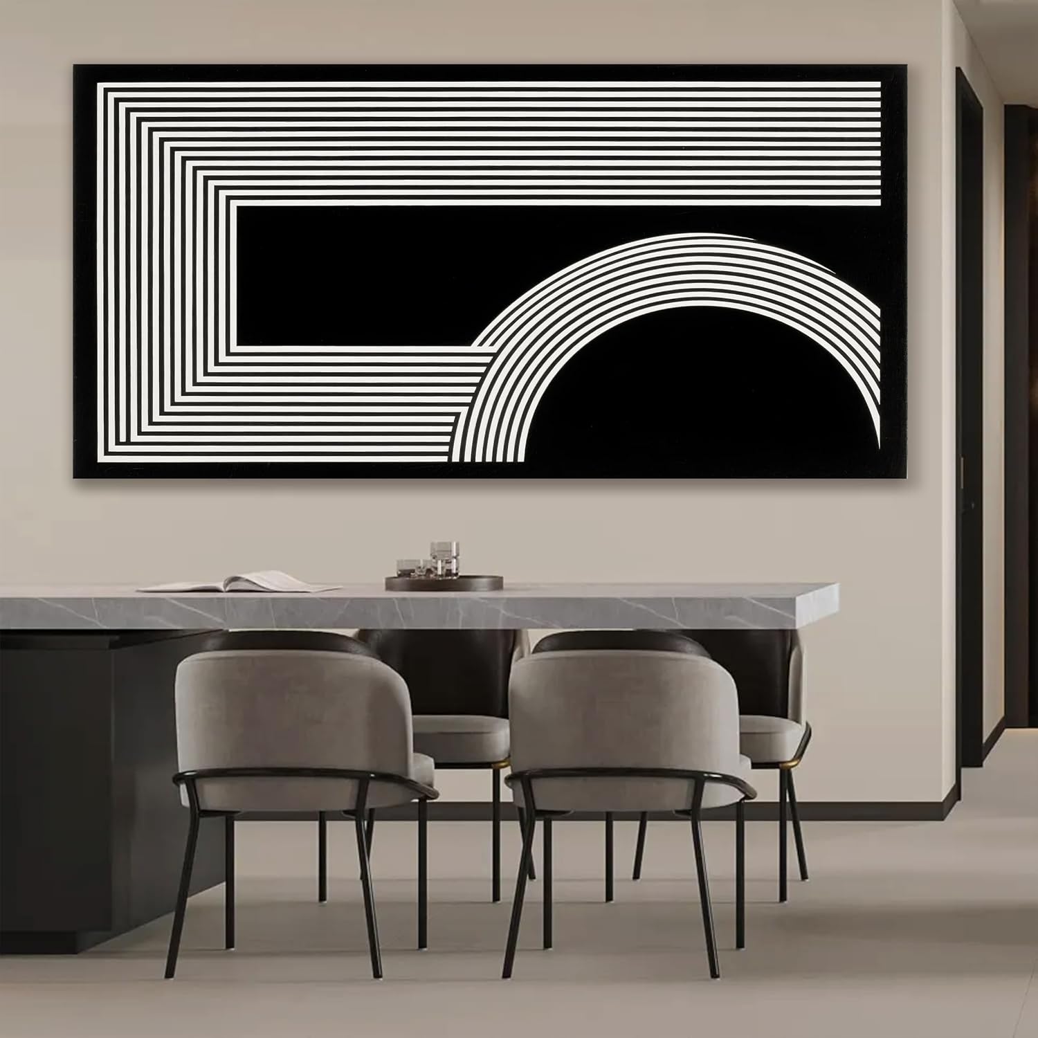 Large Abstract Wall Art Black And White Wall Art Geometric Line Wall Print Painting Artwork Canvas Art Wall Decor Simple Picture Artwork For Living Room Bedroom Office Home Wall Decor 29"X 58"
