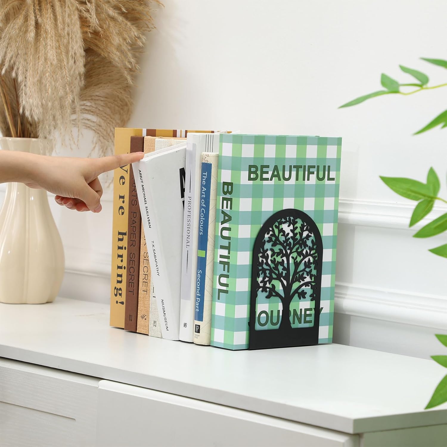 - Value Package: you will receive 3 kinds of vase design bookends and 2 kinds of tree shadow design bookends with different characteristics, 5 pairs (10 pieces) of bookends, sufficient quantity is not only a good helper for organizing books, but also a decoration for home and office, suitable for book lovers