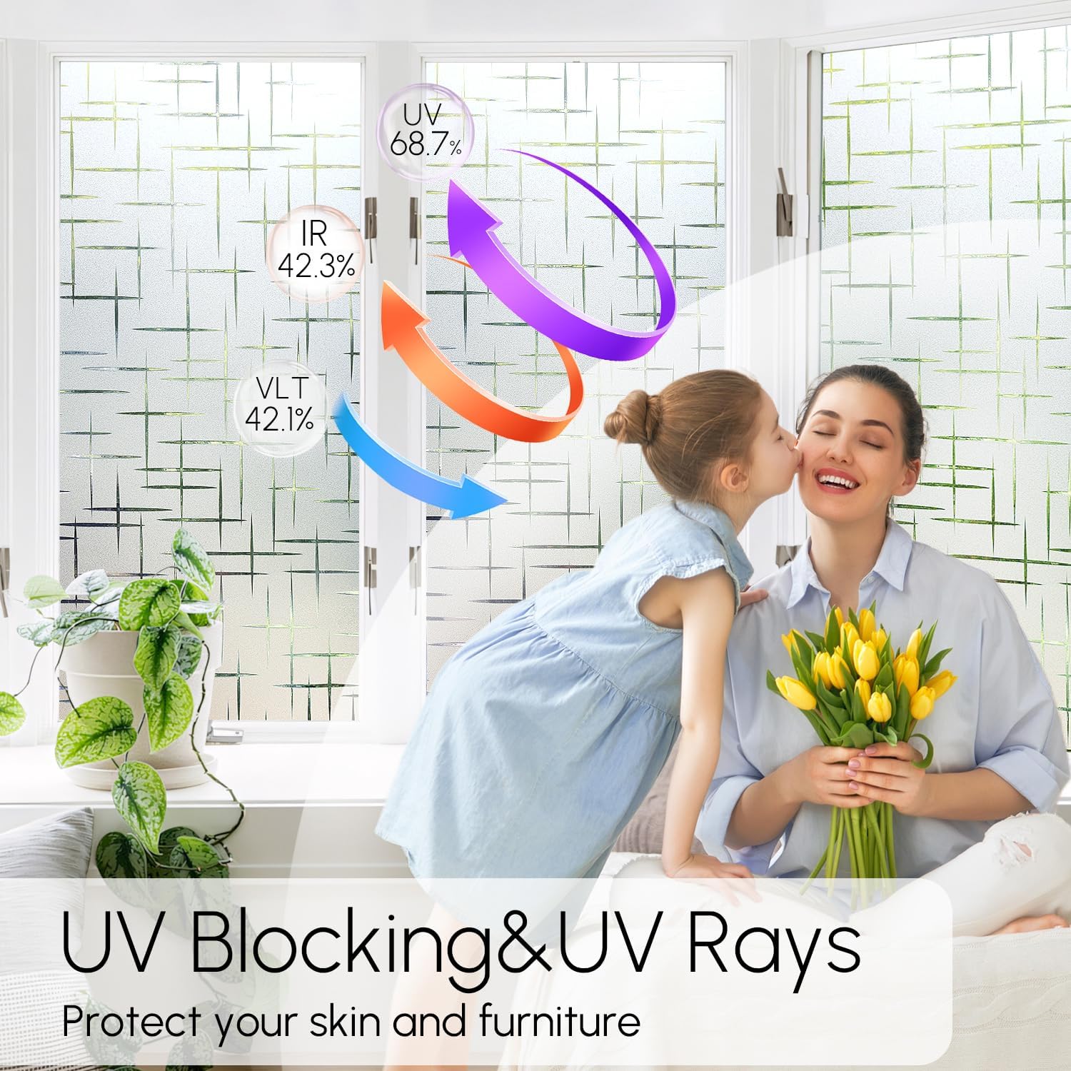 - UNIGUE DESIGN:This frosted window film features a unique Cross Pattern design that protects privacy while providing visual enjoyment, adds a decorative effect to the window, and enhances the visual appeal and aesthetics of the space.