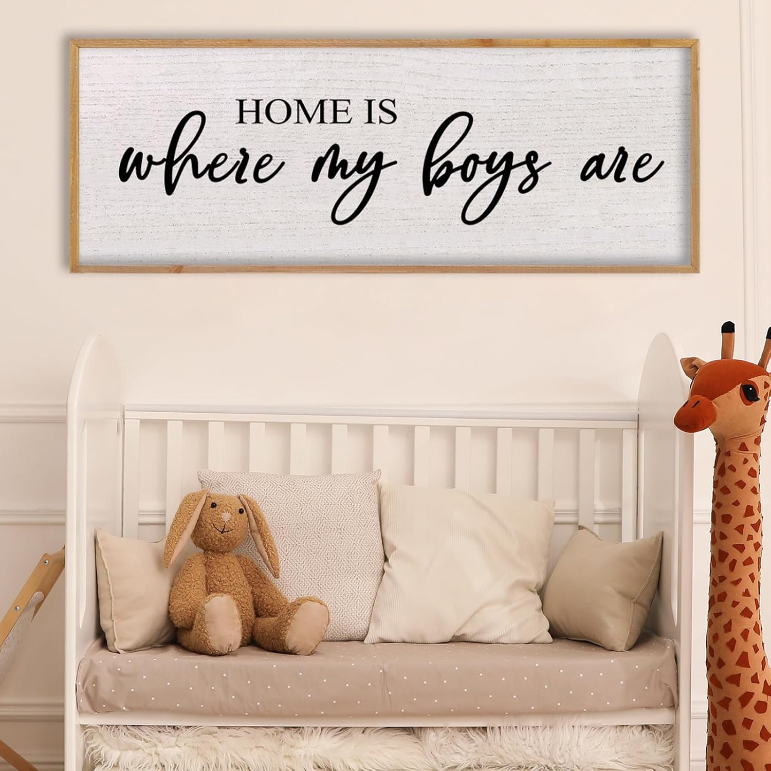 Home Is Where My Boys Are Wall Decor 40"×15" mom and her boys Sign for boys room Playroom Large Wood Framed Wall Hanging Art (Wood)