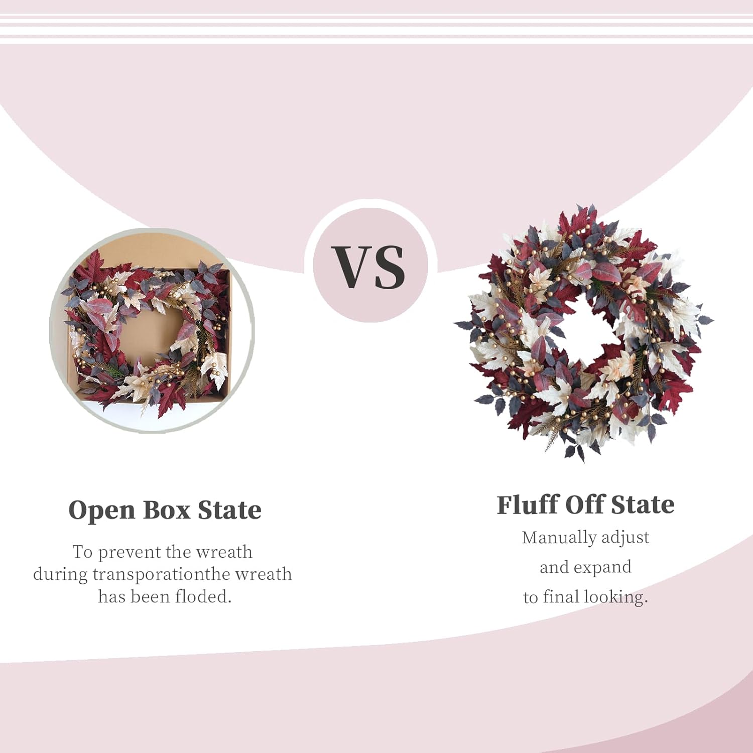 - Elegant Design: Beautiful 22-inch fall wreath featuring vibrant maple leaves adorned with sophisticated gold pearl accents, creating a stunning autumn display