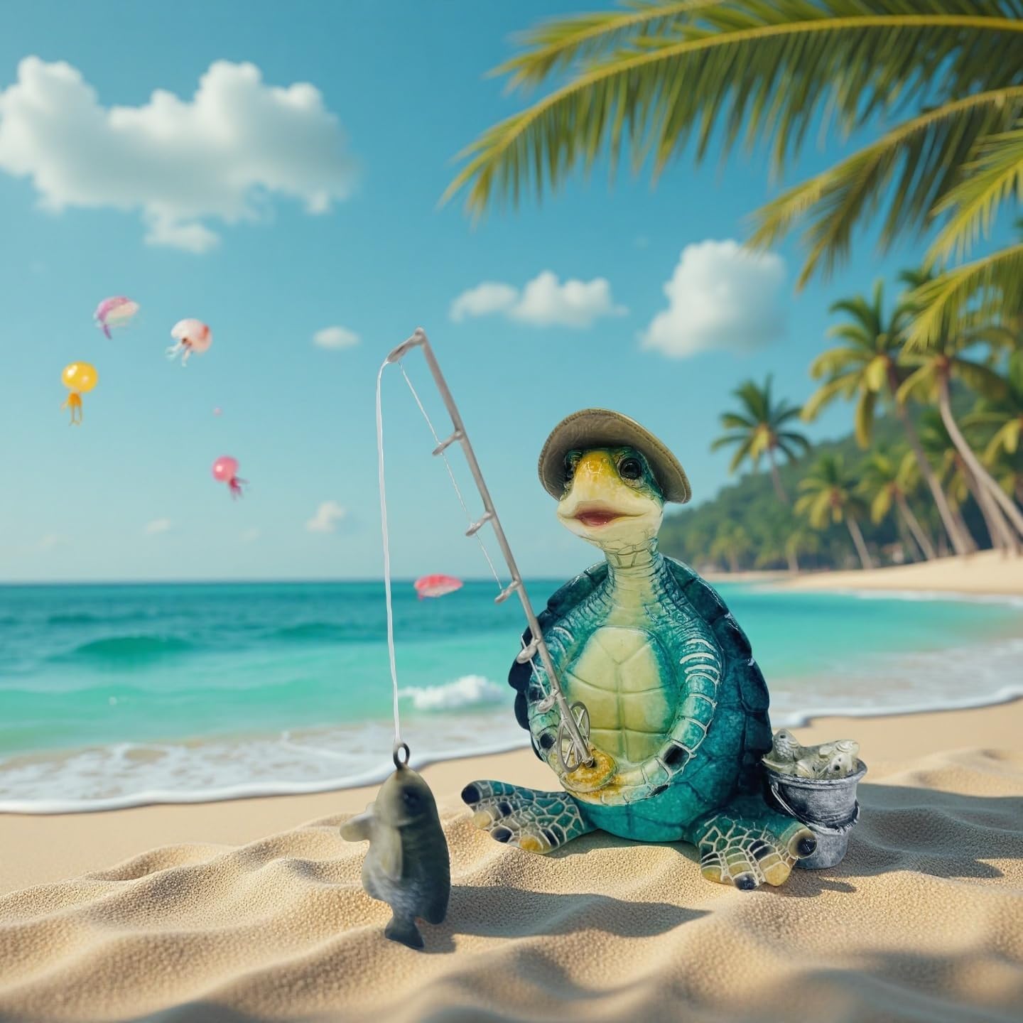- MULTIPURPOSE DECORATION: Sea Turtle Fishing Statue is perfect for sea turtle enthusiasts collection and your home, interior, garden, desk, bedroom and shelves decorations, adding a unique oceanic touch to your living space.