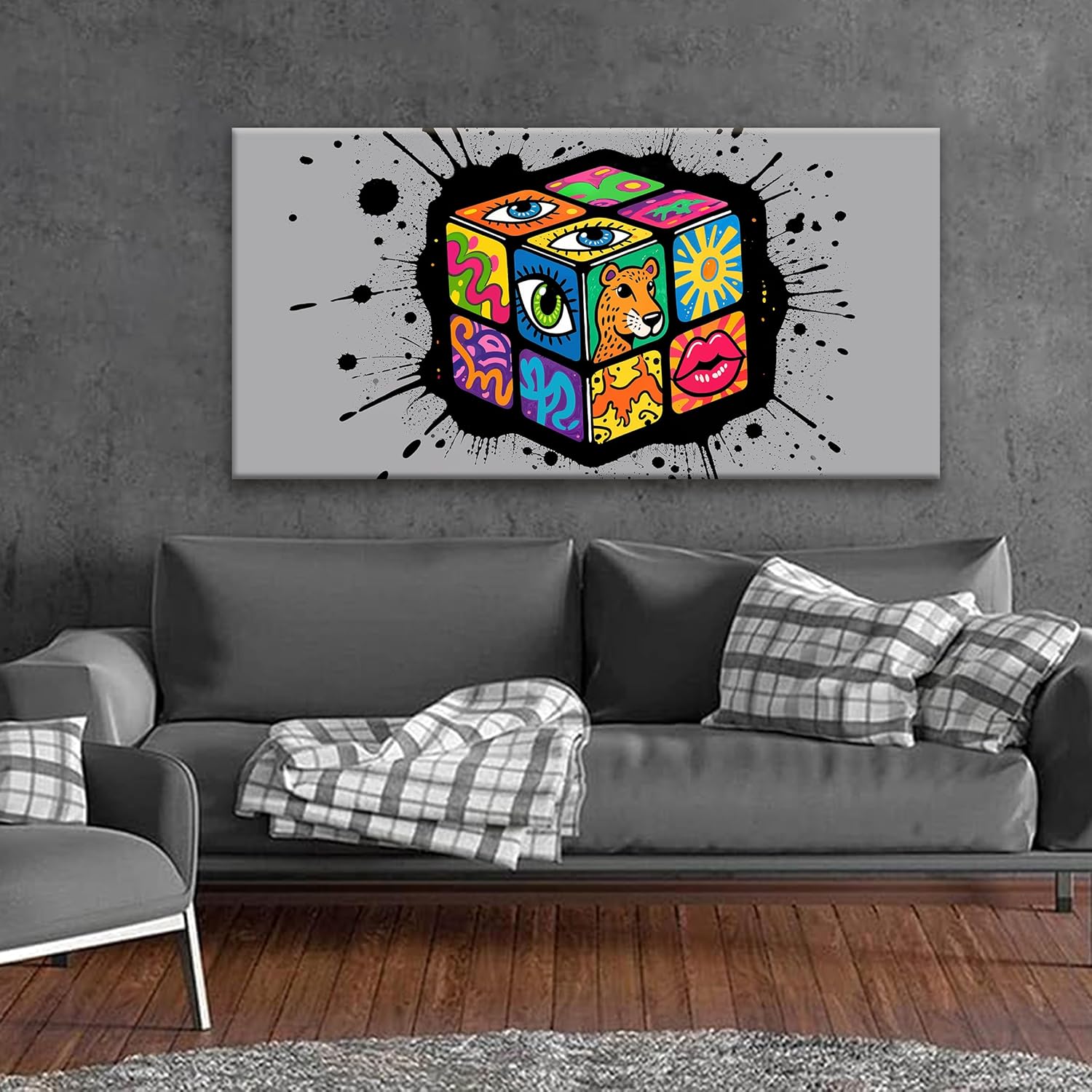 TAIJXAGSG Abstract Wall Art For Living Room Artwork Multicolor Graffiti Cube Canvas Art Wall Decor Modern Canvas Prints Pictures Abstract Wall Decor For Home Hotel Artwork 24x48 Inch