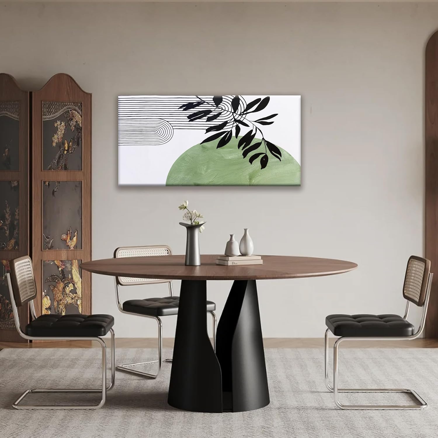 TAIJXAGSG Abstract Boho Green Wall Art Modern Canvas Art Wall Decor Artwork Abstract Wall Decor Minimalist Canvas Painting Prints Picture For Bedroom Bathroom Office Wall Artwork 20"X40"