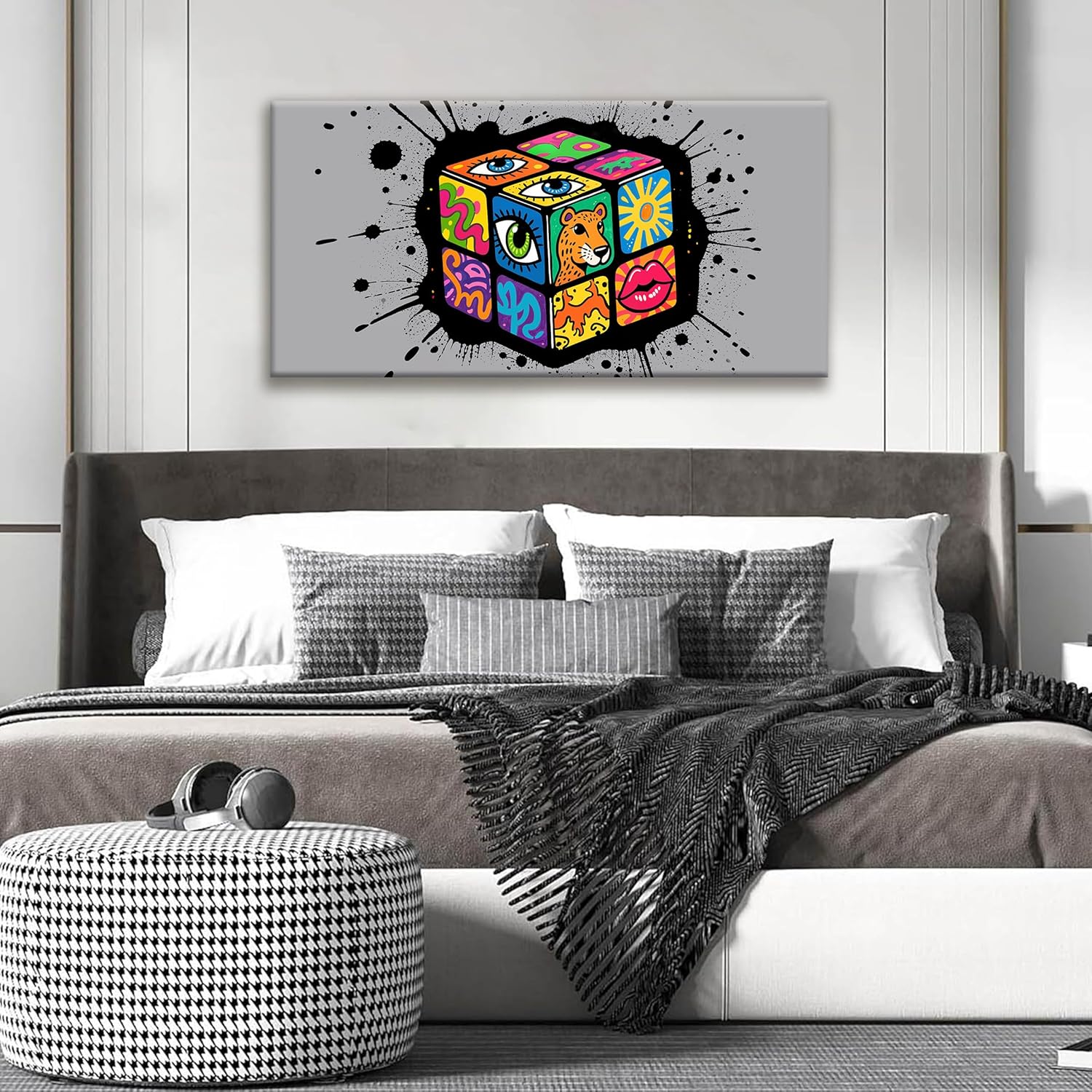 TAIJXAGSG Abstract Wall Art Small Size Home Modern Minimalist Abstract Wall Decor Multicolor Graffiti Cube Canvas Art Wall Decor Painting For Bedroom Office Artwork 20"X40"