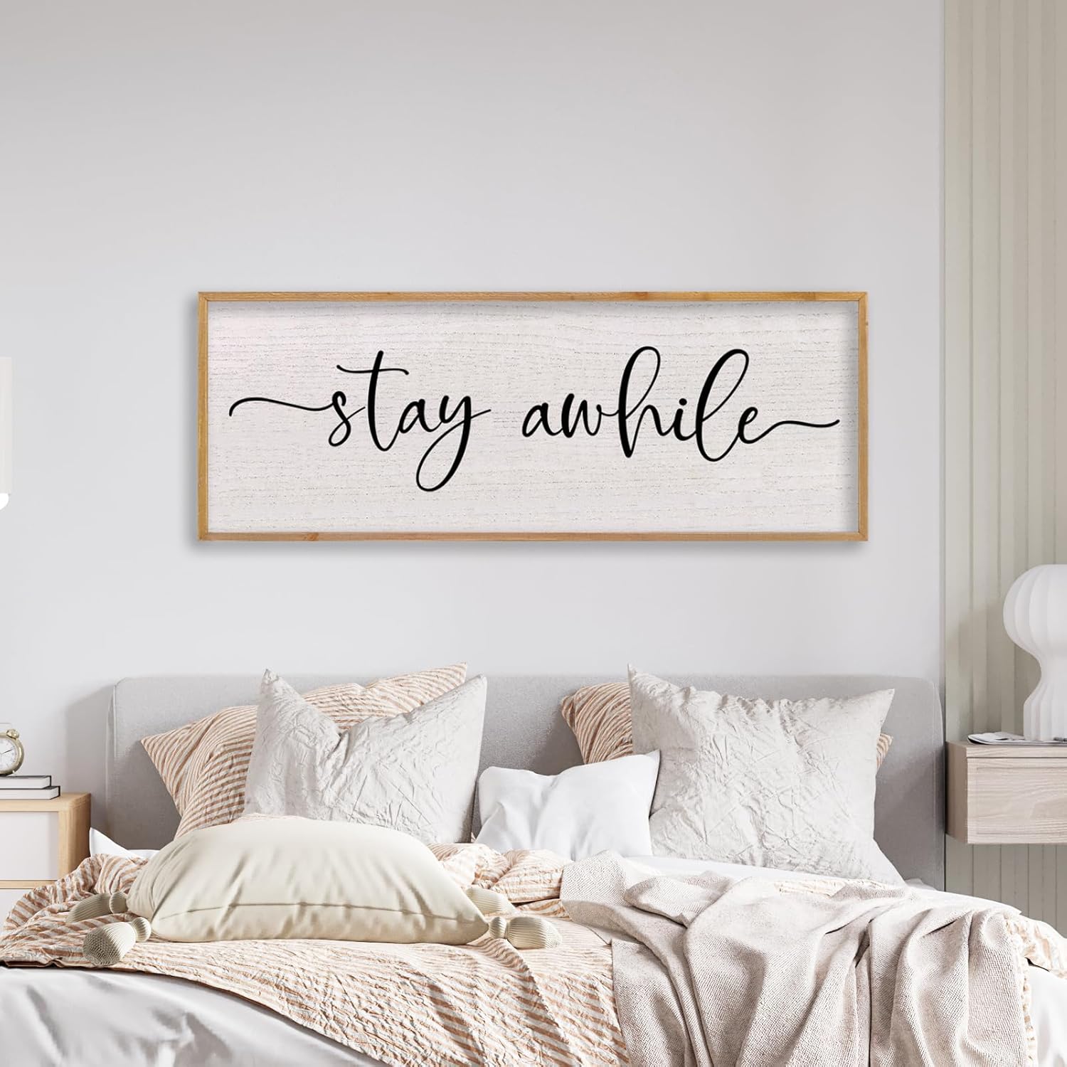 LuZhiQiang Stay Awhile Home Sign Wall Decor 40"X15" Large Solid Wood Frame For Hallway Living Room Entryway Wall Art Hanging (Wood)