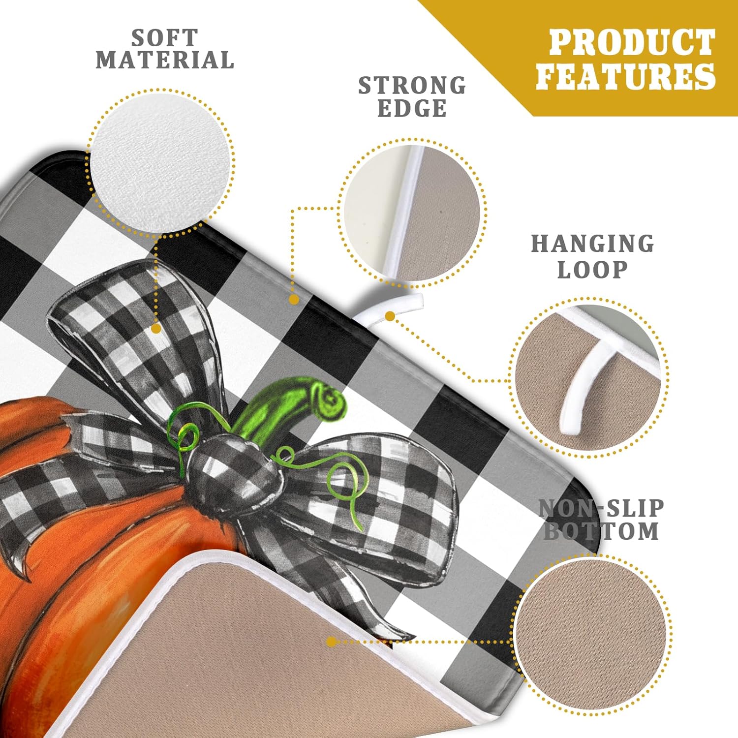 - 【Absorbent】The fall pumpkin dish drying mat is a 3-ply design made of absorbent microfiber, composite sponge, and cotton sateen fabric, the dish drying pad absorbs 4X its weight in water. Perfect for air-drying dishes, glasses, pots, pans, bottles, fruits, and vegetables.