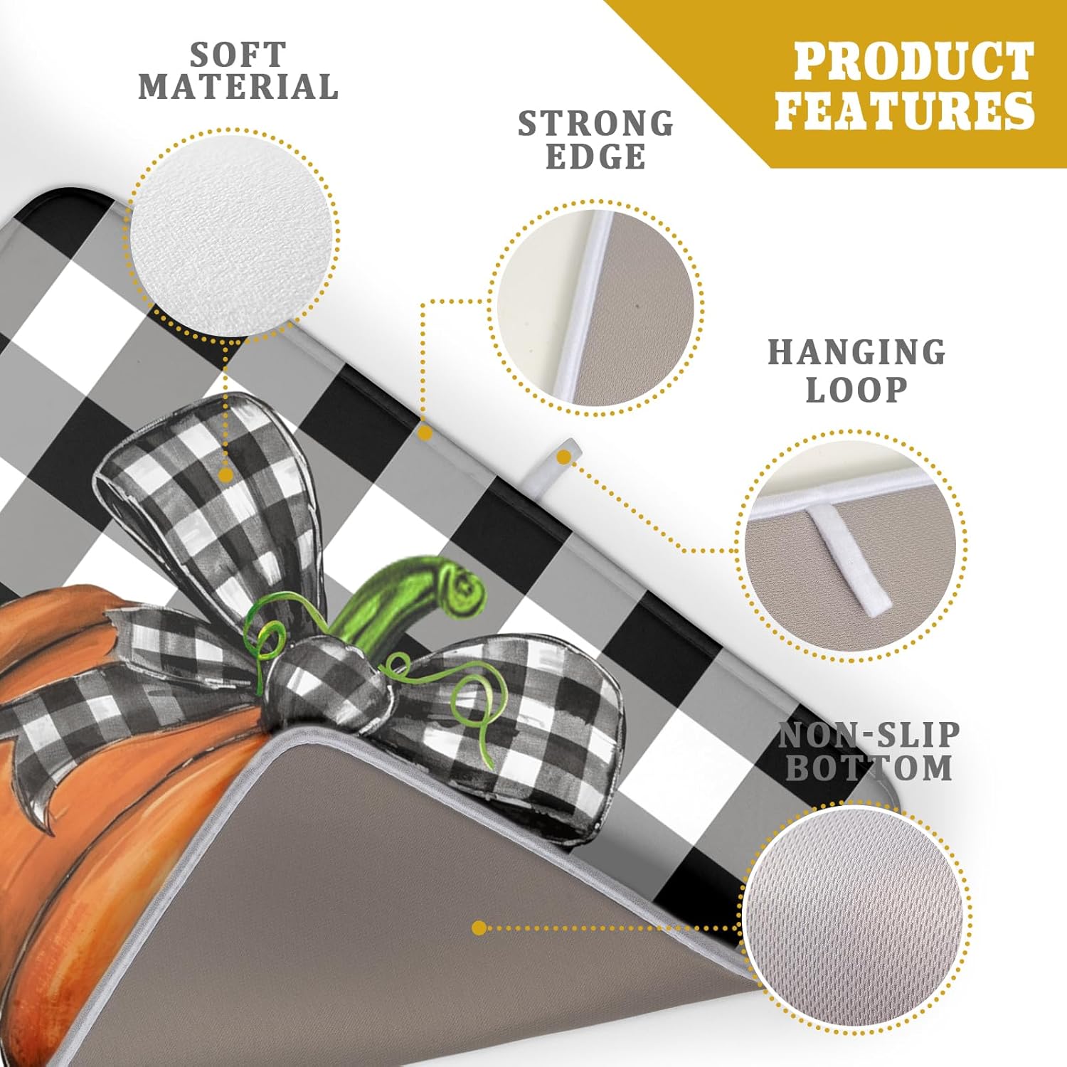 Fall Pumpkin Dish Drying Mat for Kitchen Counter Black White Buffalo Check Thanksgiving Super Absorbent Reversible Microfiber Kitchen Countertop Protector Dishes Pad Large 18x24 inch