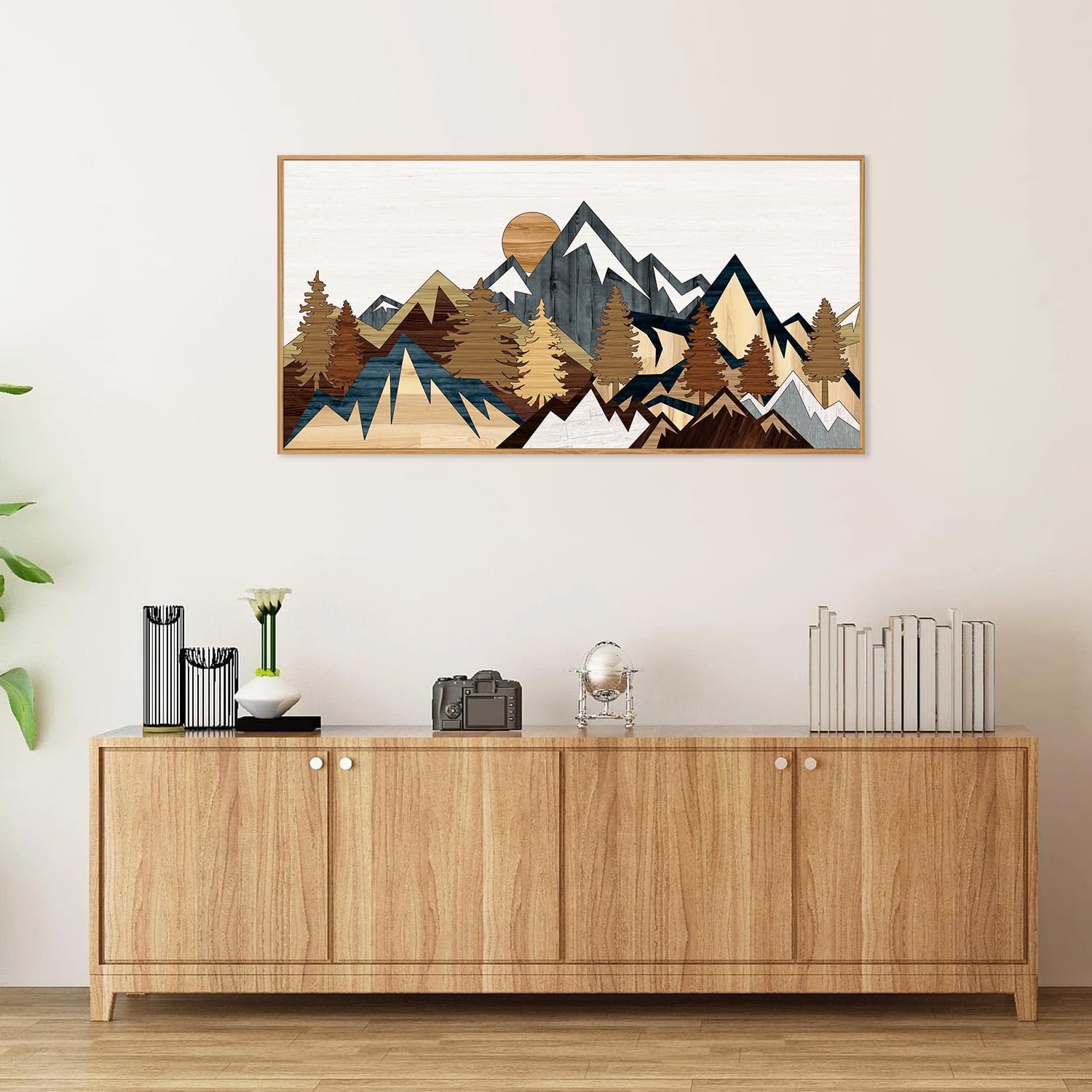 - Unique Woodcut Style Design:Transform your space with this eye-catching canvas featuring a modern farmhouse woodcut style. The artistic blend of mountains and forests creates a warm, inviting atmosphere in any room.