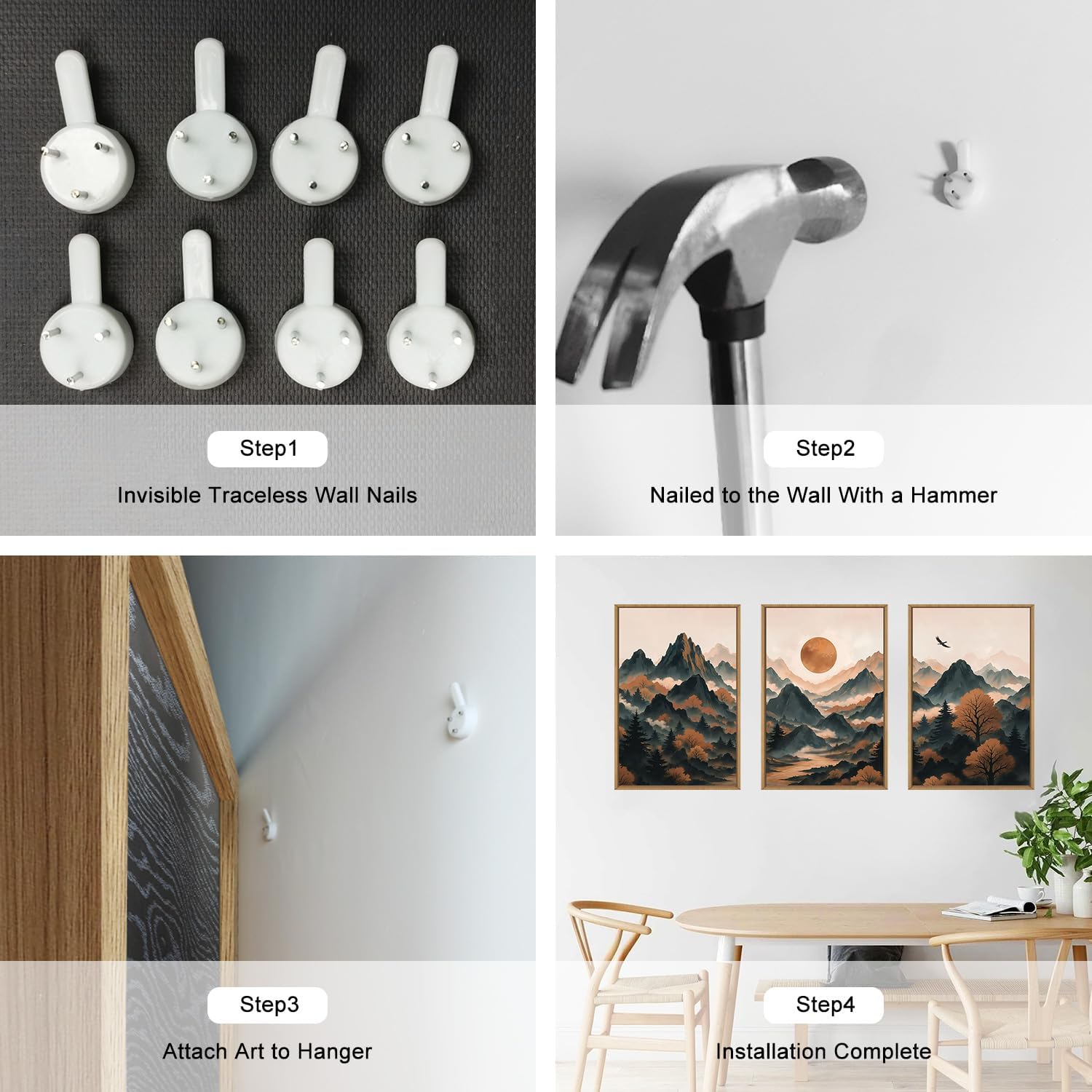 - 【Large Boho Mountain Wall Art Set】This large boho mountain framed canvas wall art set executed in a charming nature style, captures mountains and trees, evoking an poetic atmosphere. Its modern organic aesthetic is reminiscent of nature charm. Utilizing this artwork as part of your decor will make your room full of poetry.