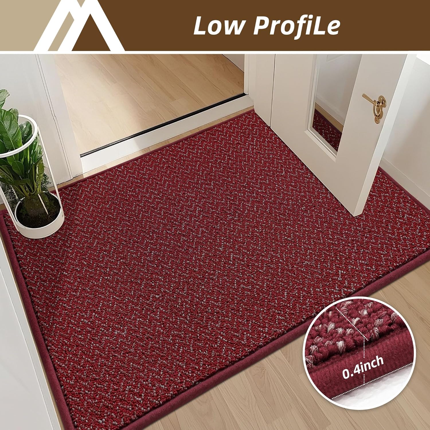 - LOW PILE AND TOUGH:A 0.4” low-pile let the door open easily over it without jamming or curling.Tightly woven Polypropylene fibers and reinforced overlock binding edges withstand daily wear.If the welcome mat you received has creases, don't worry, the creases will disappear after a few days of use, you can also put a wet towel on the creases and iron them with an iron to eliminate the creases