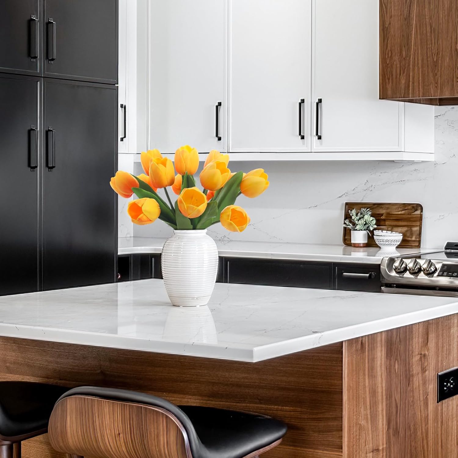 - Wide application: These artificial tulips are ideal for home and office decoration. You can use them in the kitchen, shelves, tables or anywhere else. They can also be used as decorations or centerpieces for weddings and parties, or as holiday gifts for friends and relatives on Valentine's Day, Easter, Mother's Day, Christmas, New Year.