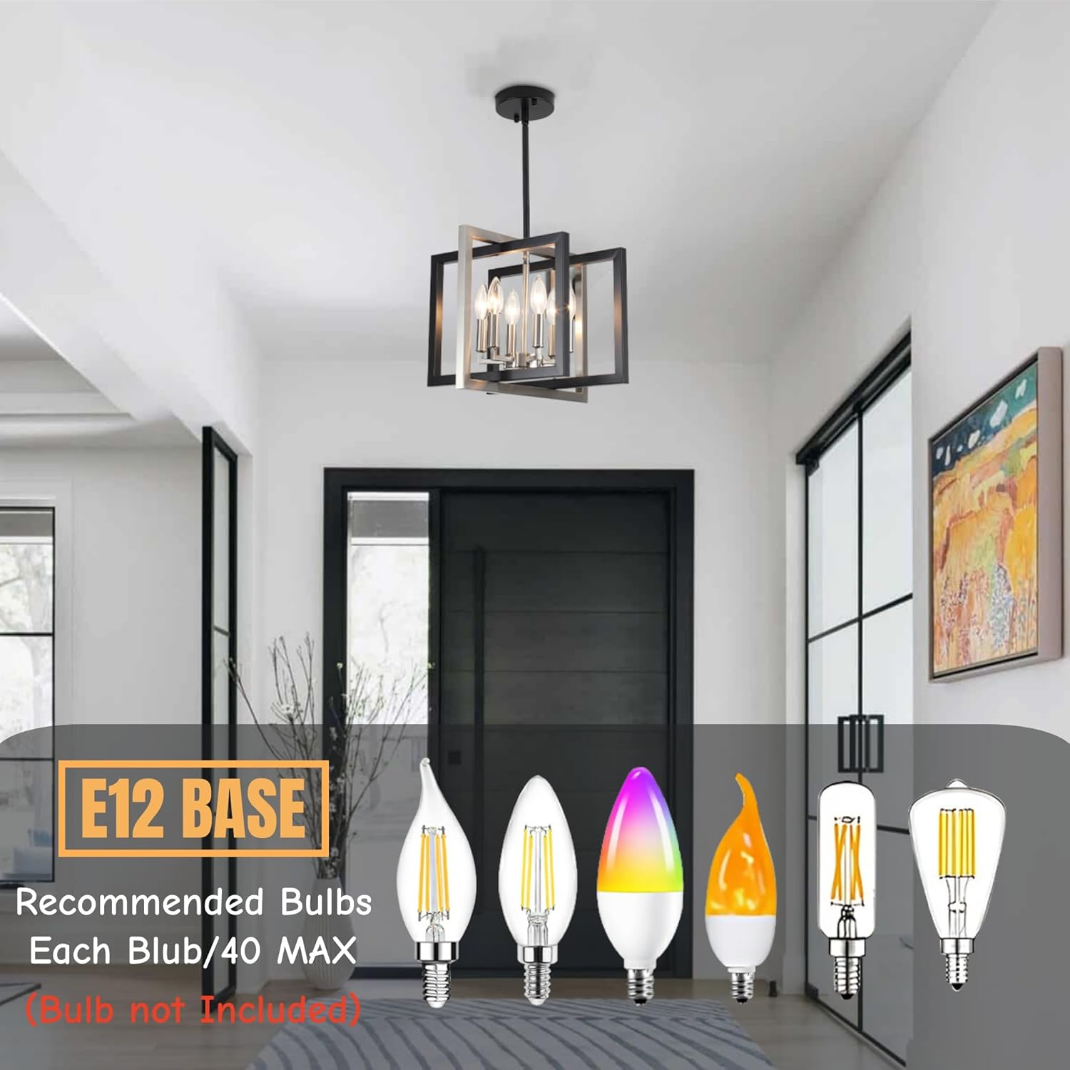 - Bulb Requirement: Equipped with 6 E12 bases, this dining room light fixture over table supports various bulb types, including incandescent, LED, CFL, and halogen (Bulbs NOT Included). Pair this black and nickel chandelier farmhouse light fixture with dimmable bulbs and a compatible dimmer switch (Switch NOT Included) for adjustable lighting